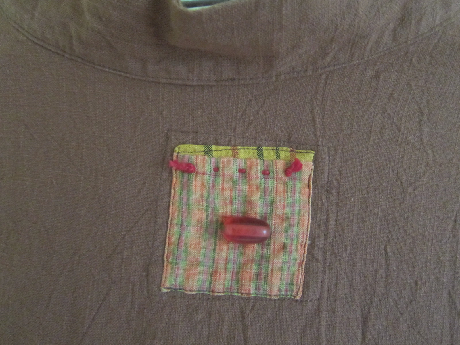 薄茶(ベージュ)と濃い目の海老茶のツートンの色調が とてもシックです~。 ポケットと背守りがより一層引き立ちます。