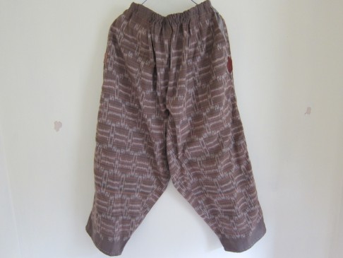 早川ユミ 草木染手織り絣布もんぺ(茶)①
