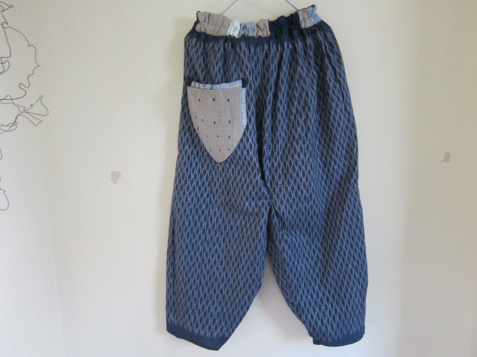 早川ユミ 草木染手織り絣布もんぺ(紫ブルー)③