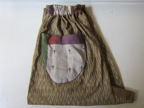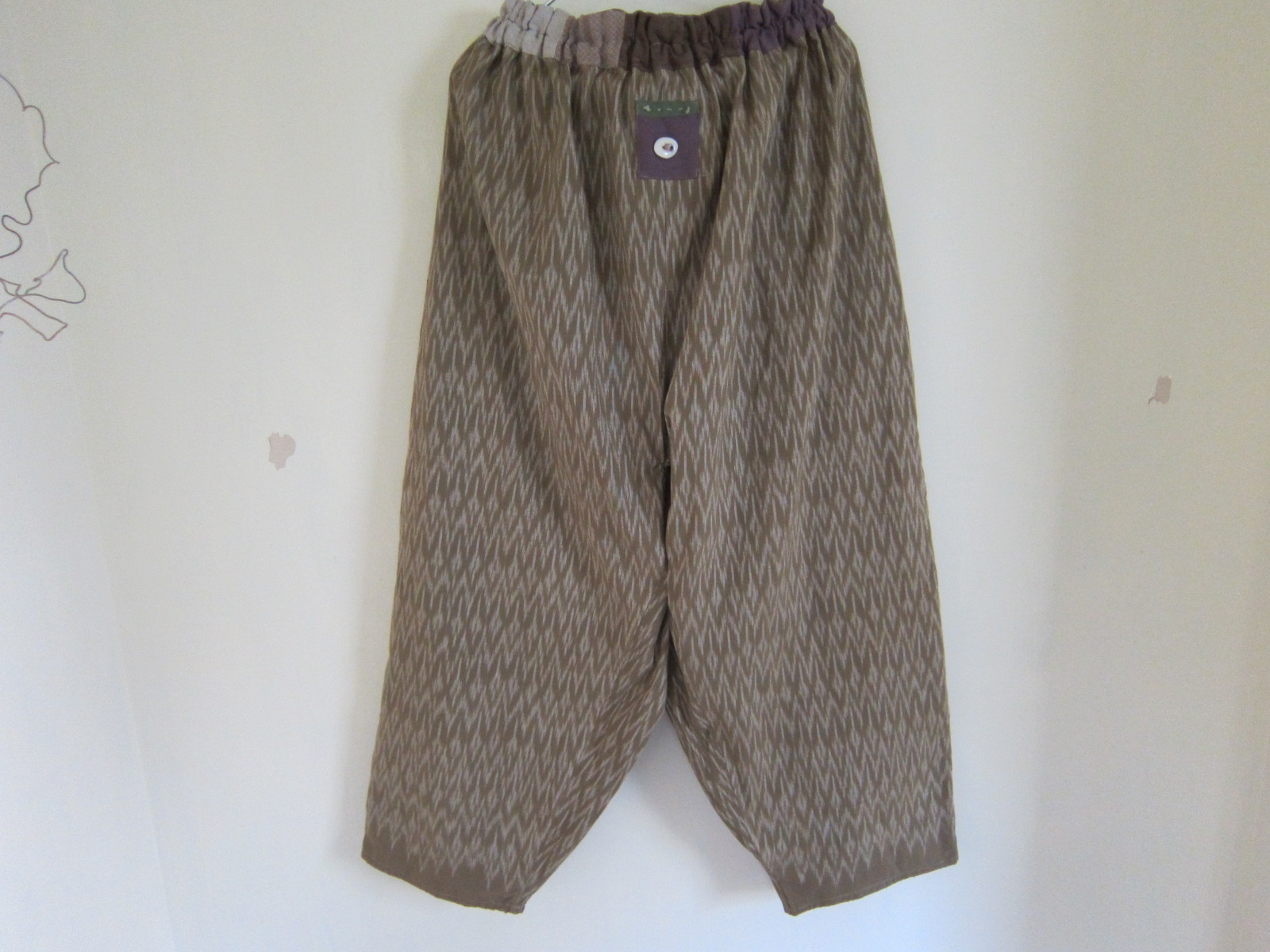 早川ユミ 草木染手織り絣布もんぺ(渋グリーン)④