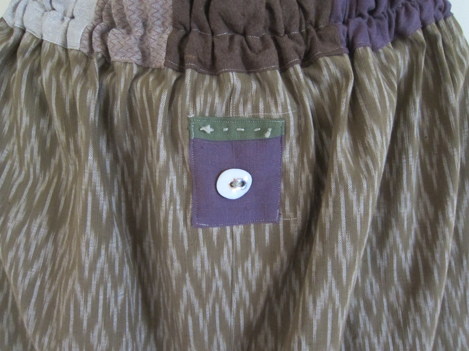 早川ユミ 草木染手織り絣布もんぺ(渋いグリーン)④