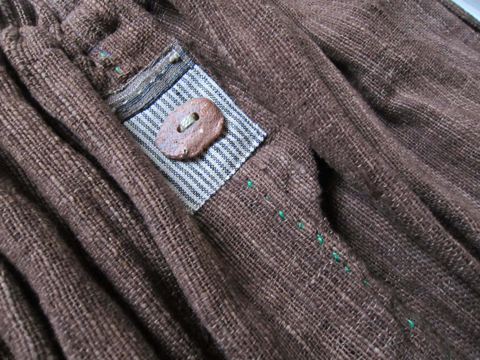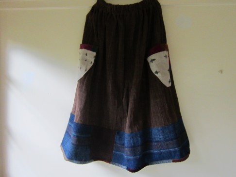 ざくざくした茶色の手織り布と藍染の手織り布が 美しくマッチした秋らしいスカートです~。 是非、ご覧くださいませ。