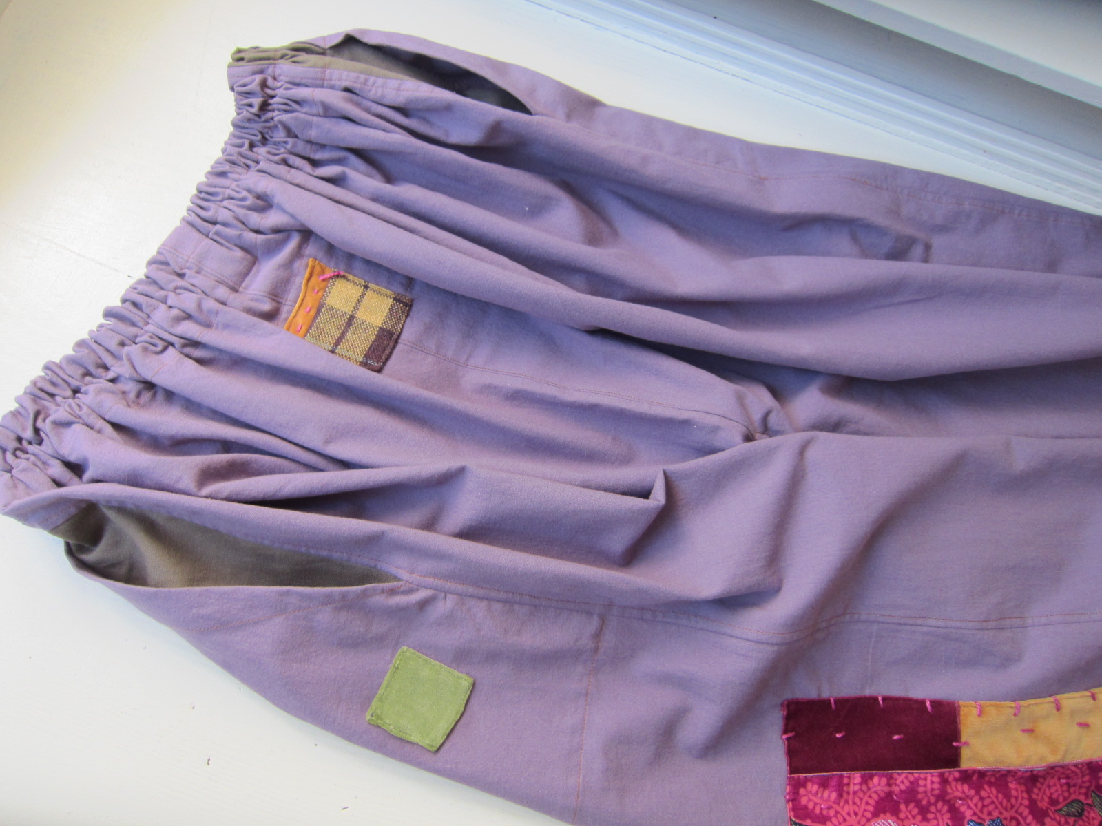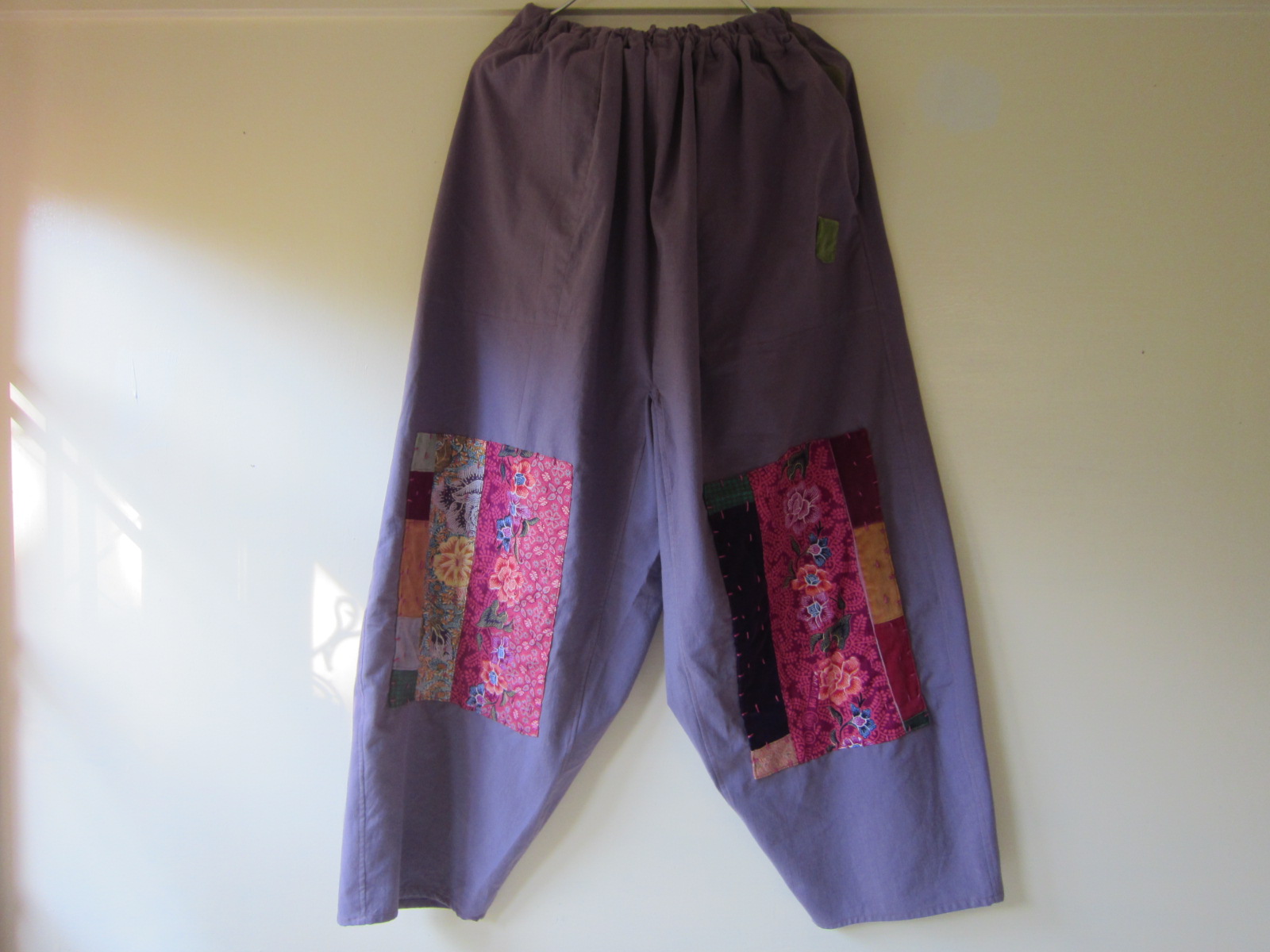 画像よりも少し濃いめのきれいな紫です。 ちくちくパッチカラーはいつものユミさんワールド~。 沢山の夢をもらえそうなもんぺを是非お試しください!
