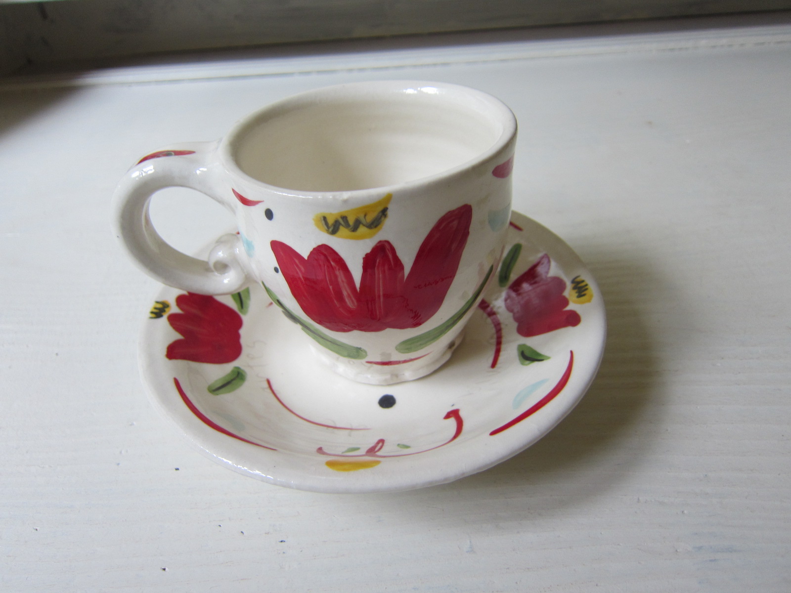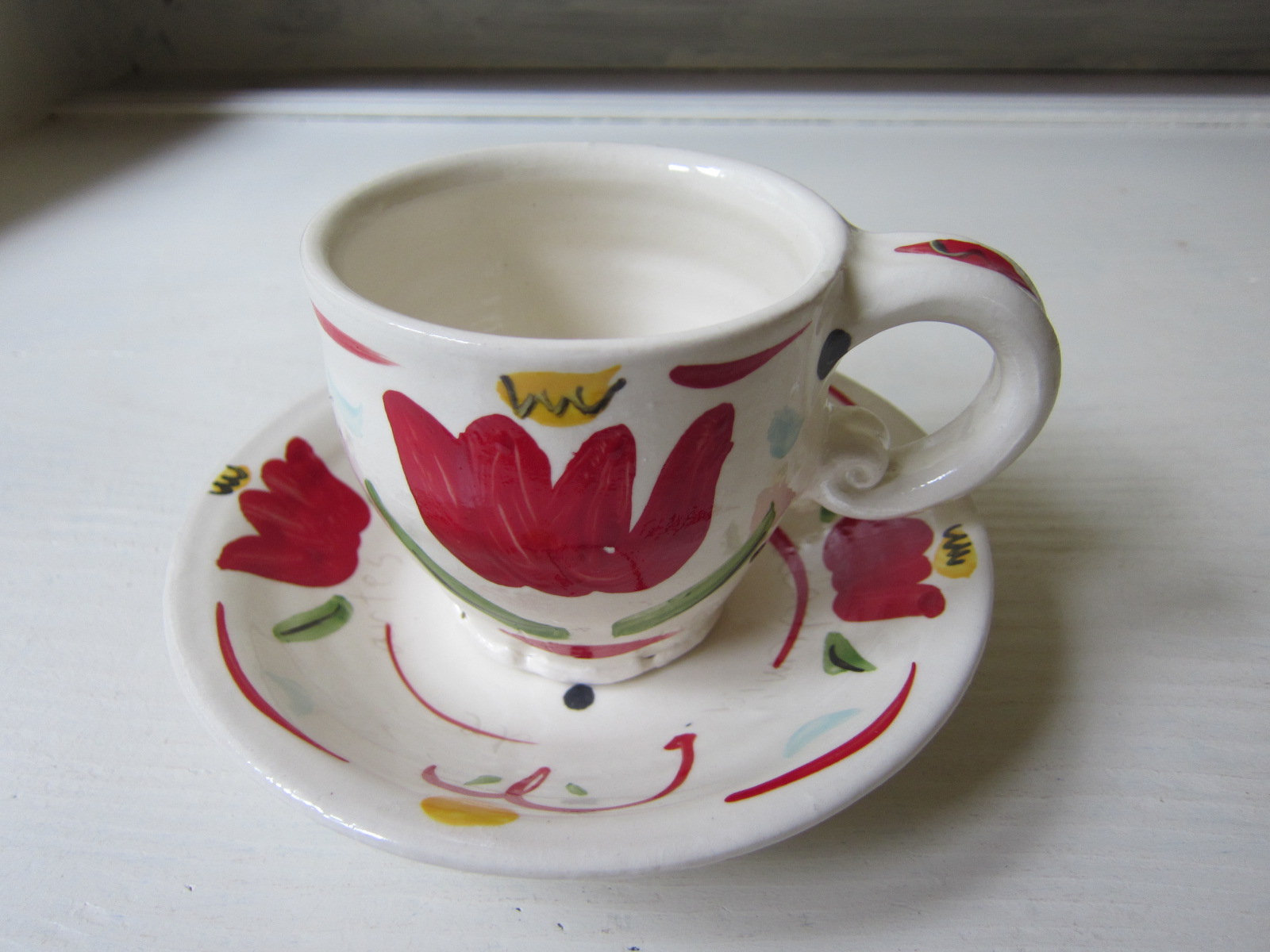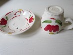赤いチューリップがとても可愛いカップ&ソーサーです。 マグカップとして小皿として、単品でも使えます。