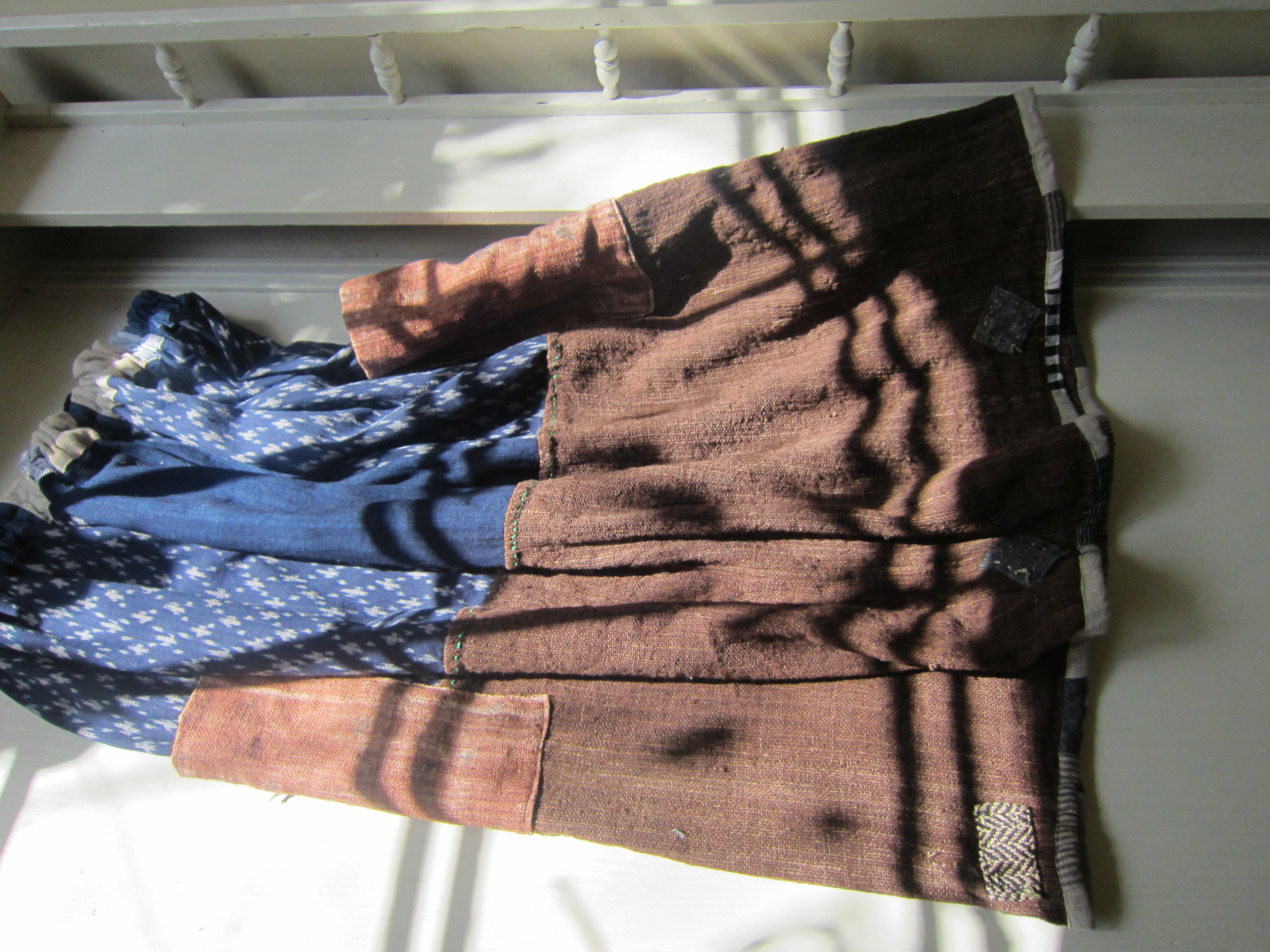 新入荷・早川ユミ 茶+草木染手織り絣布スカート①
