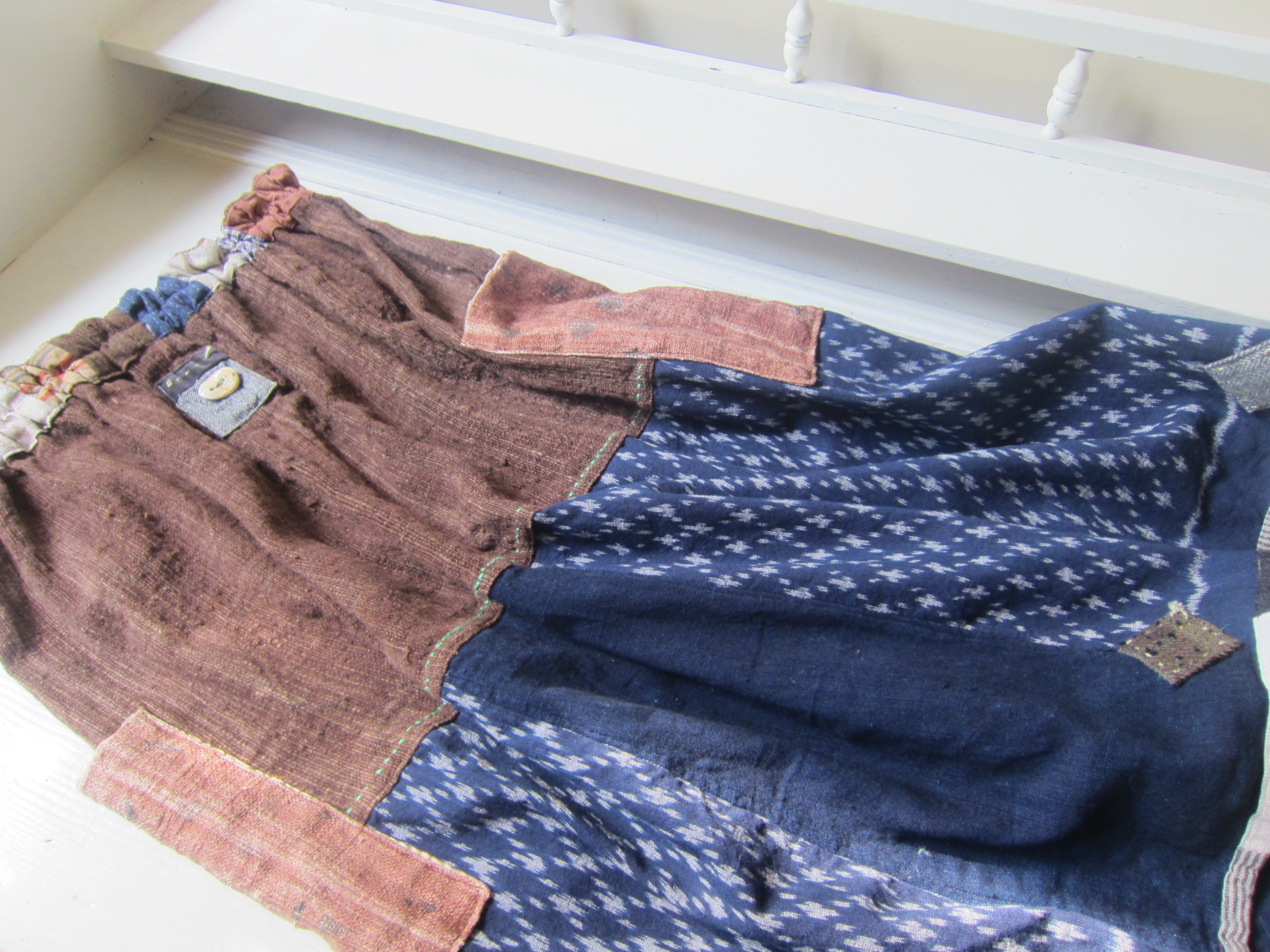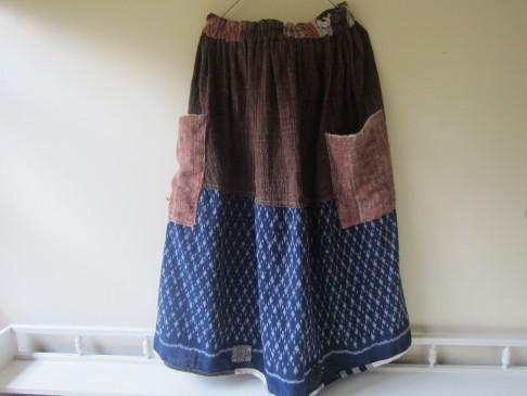 早川ユミ 茶+藍染手織り絣布スカート②