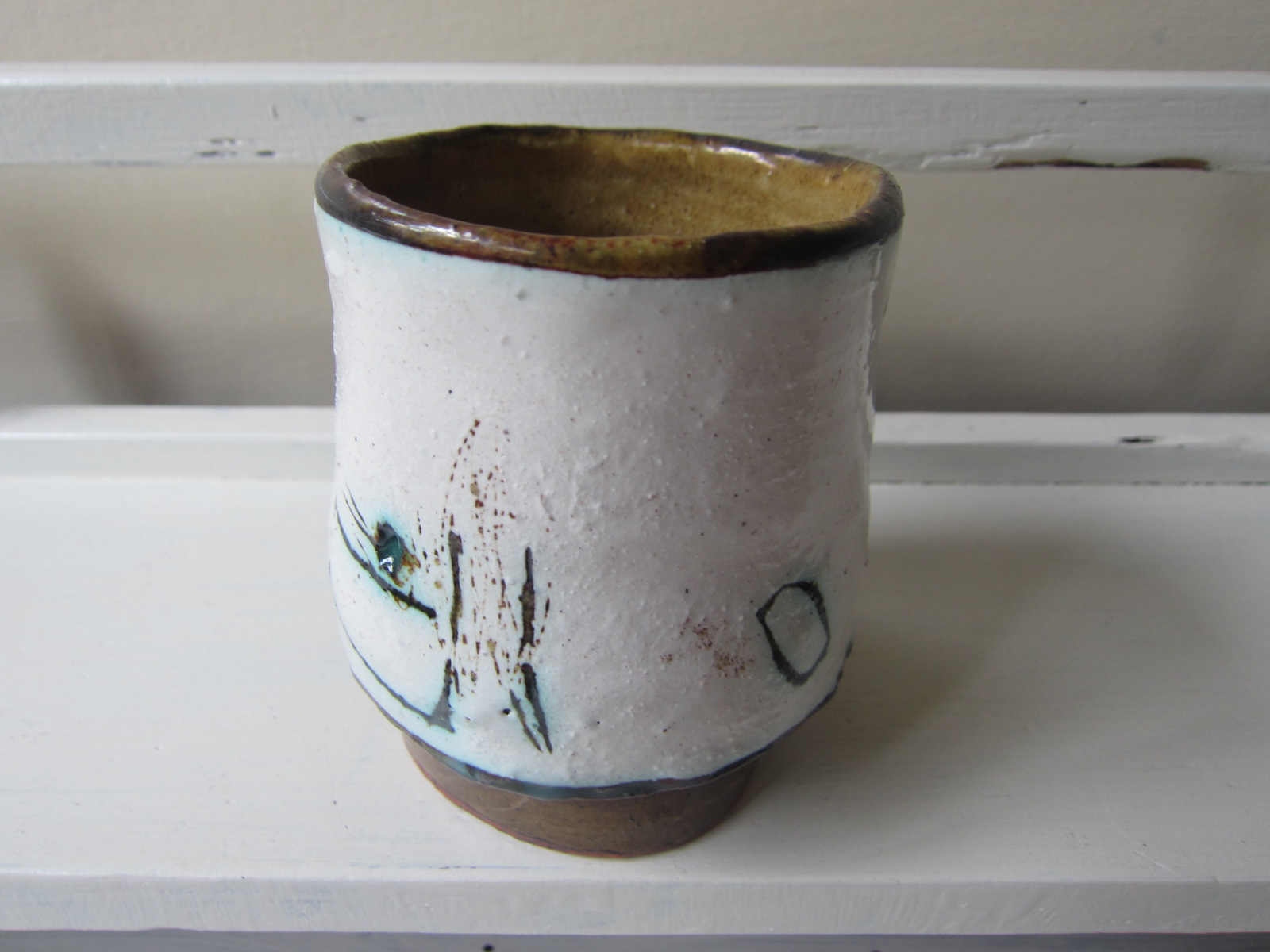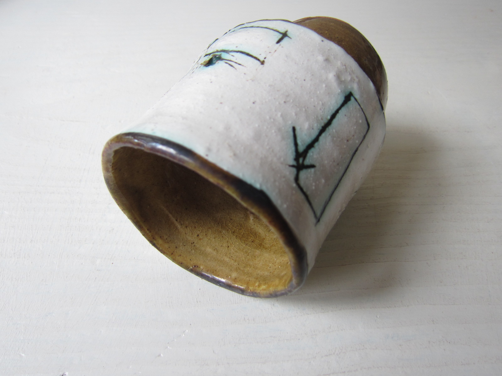 内側のあめ色と外側の白い釉薬が