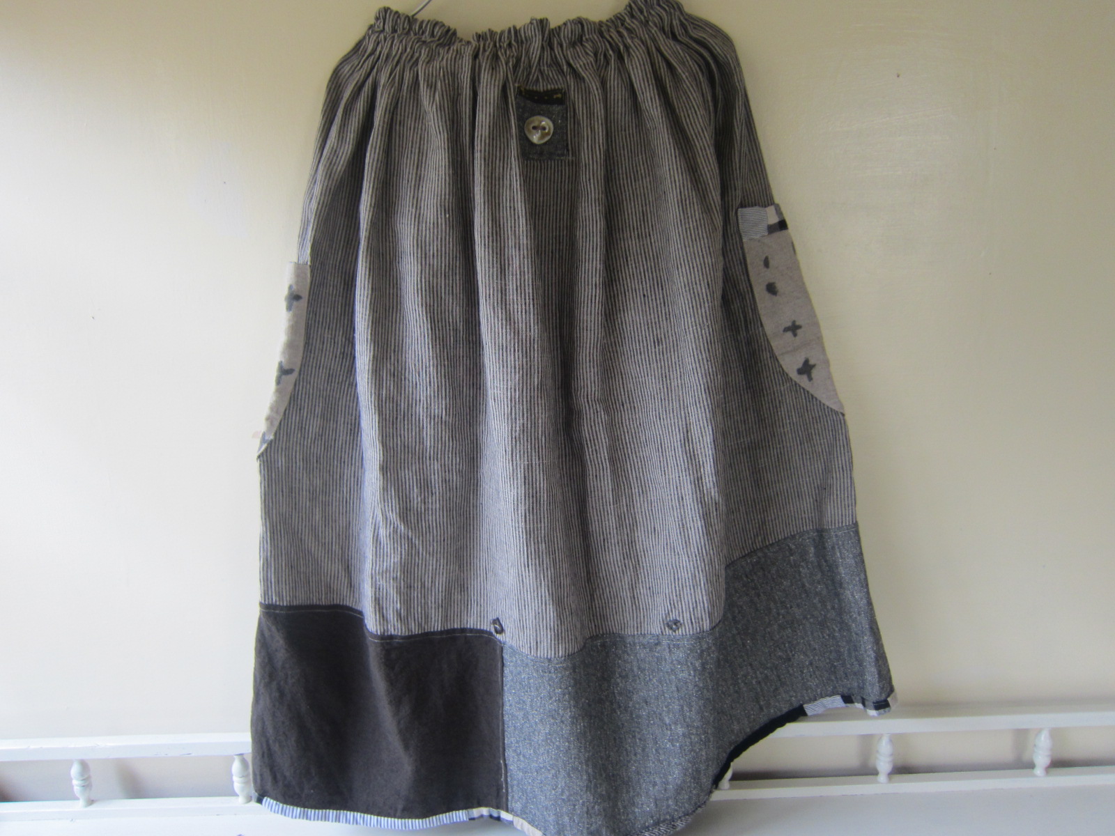 早川ユミ 上海木綿+リトアニア麻つぎはぎスカート