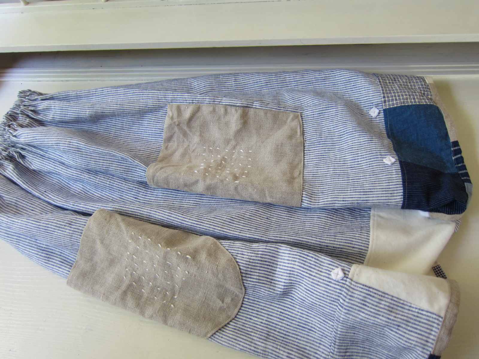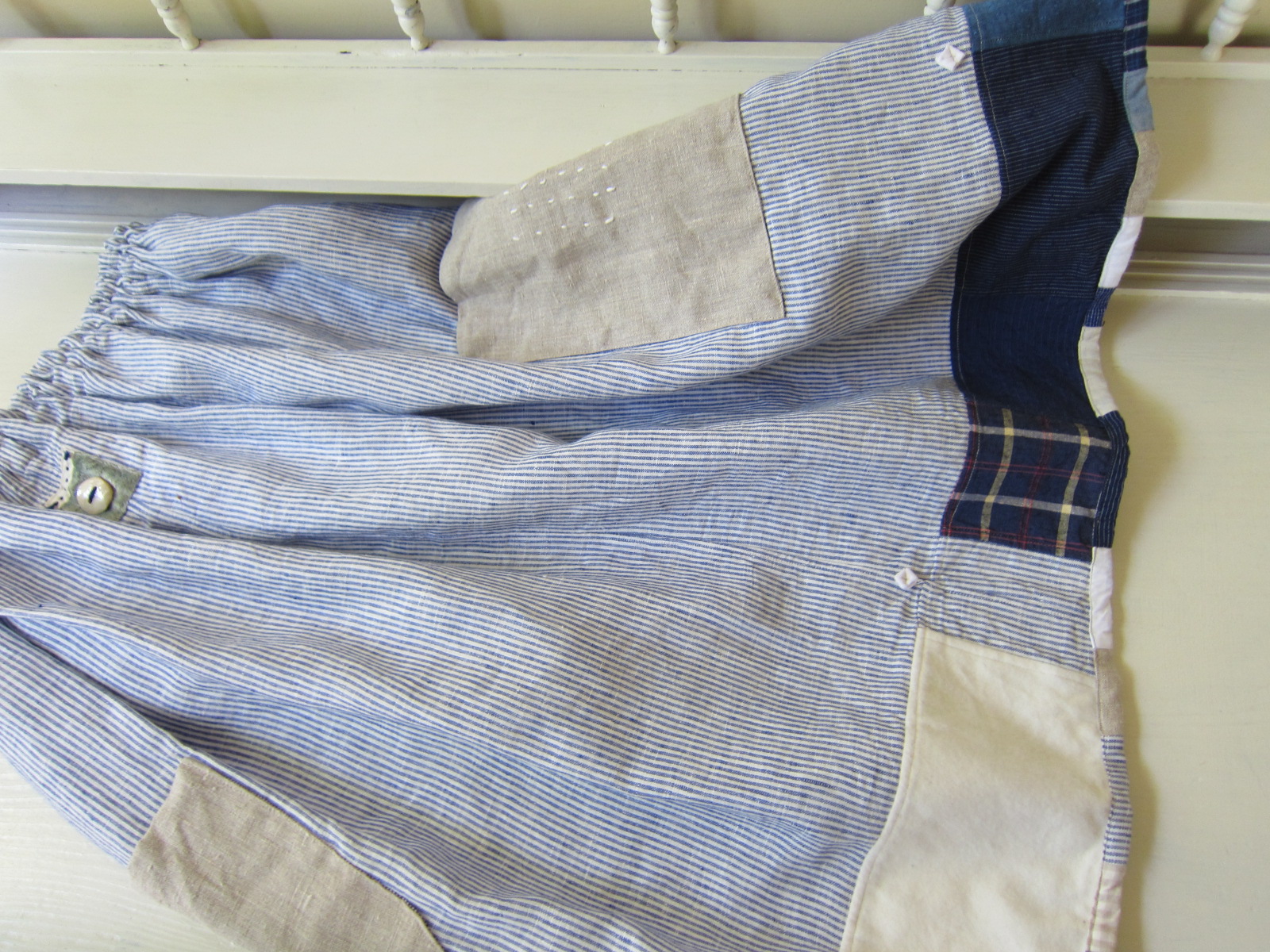 早川ユミ リトアニア麻スカート・ブルーストライプ