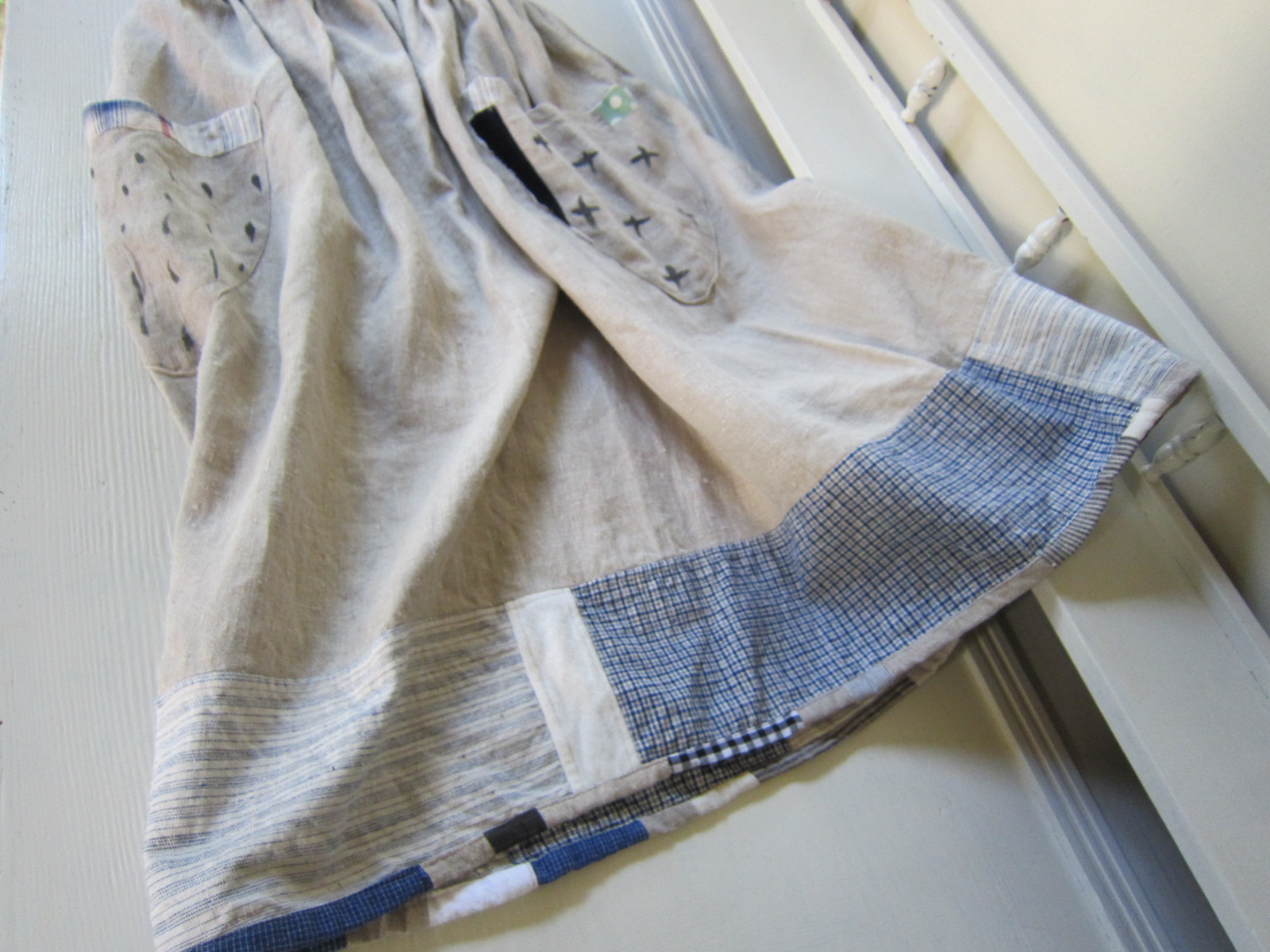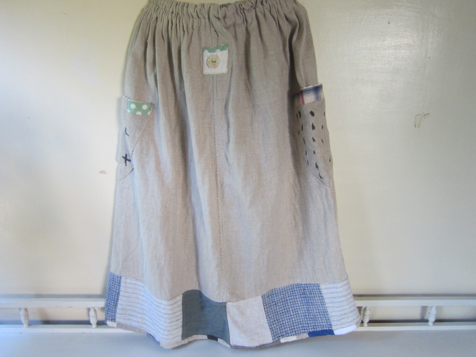 早川ユミ 麻つぎはぎスカート リトアニア麻+土佐紬+上海木綿