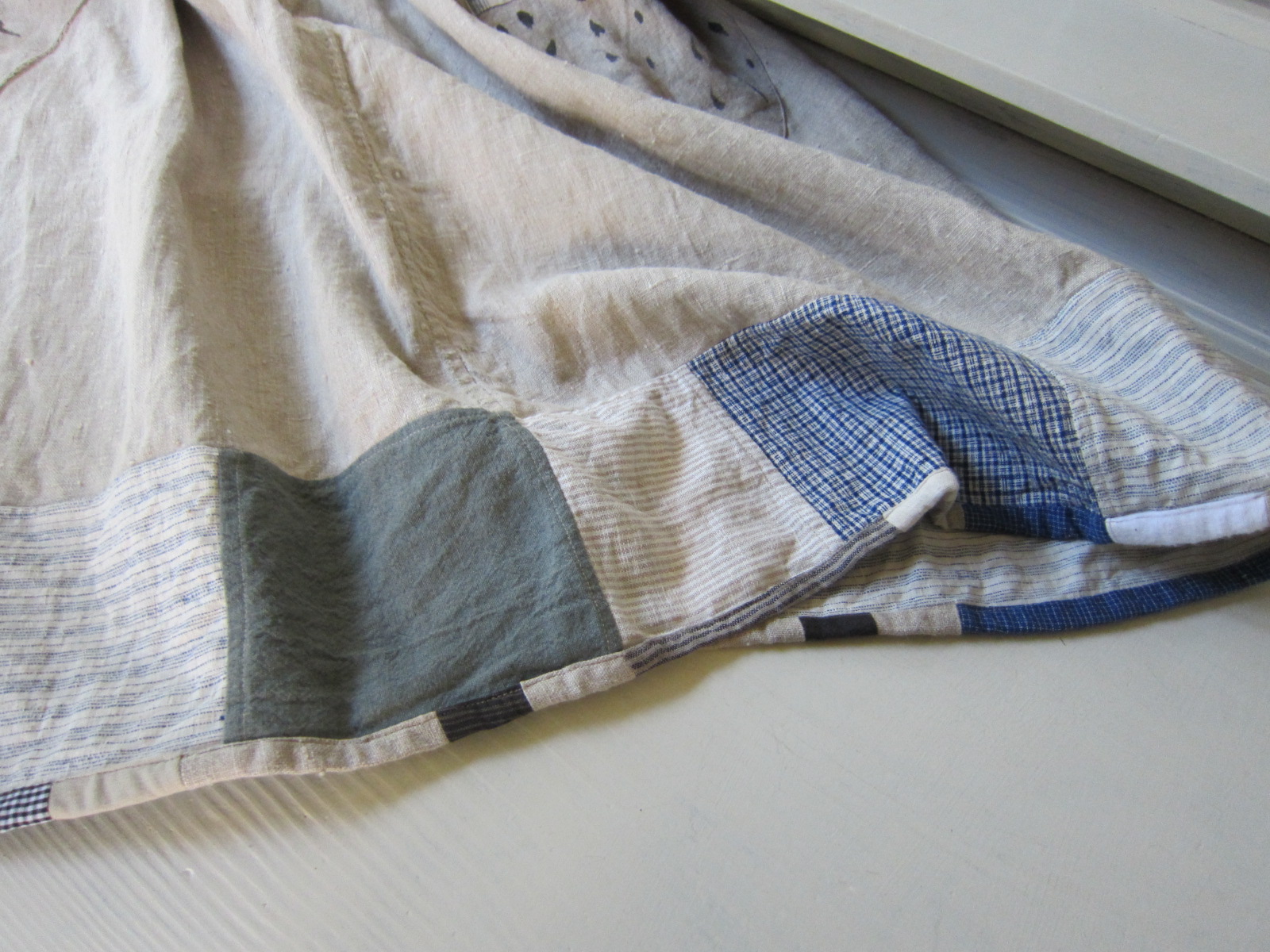 早川ユミ 麻つぎはぎスカート リトアニア麻+土佐つむぎ+上海木綿