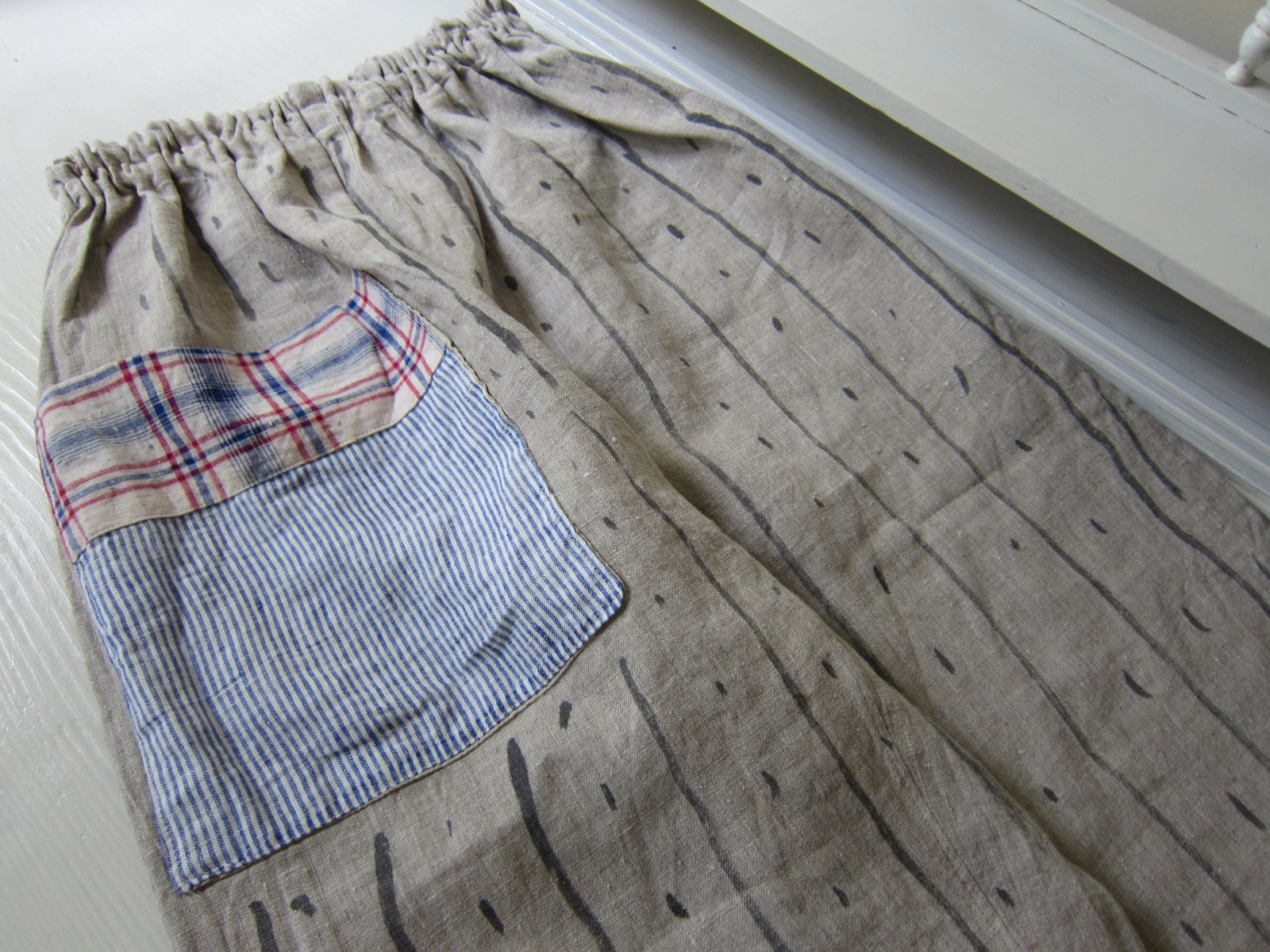 ポケットは上海木綿とリトアニア麻のコンビ。