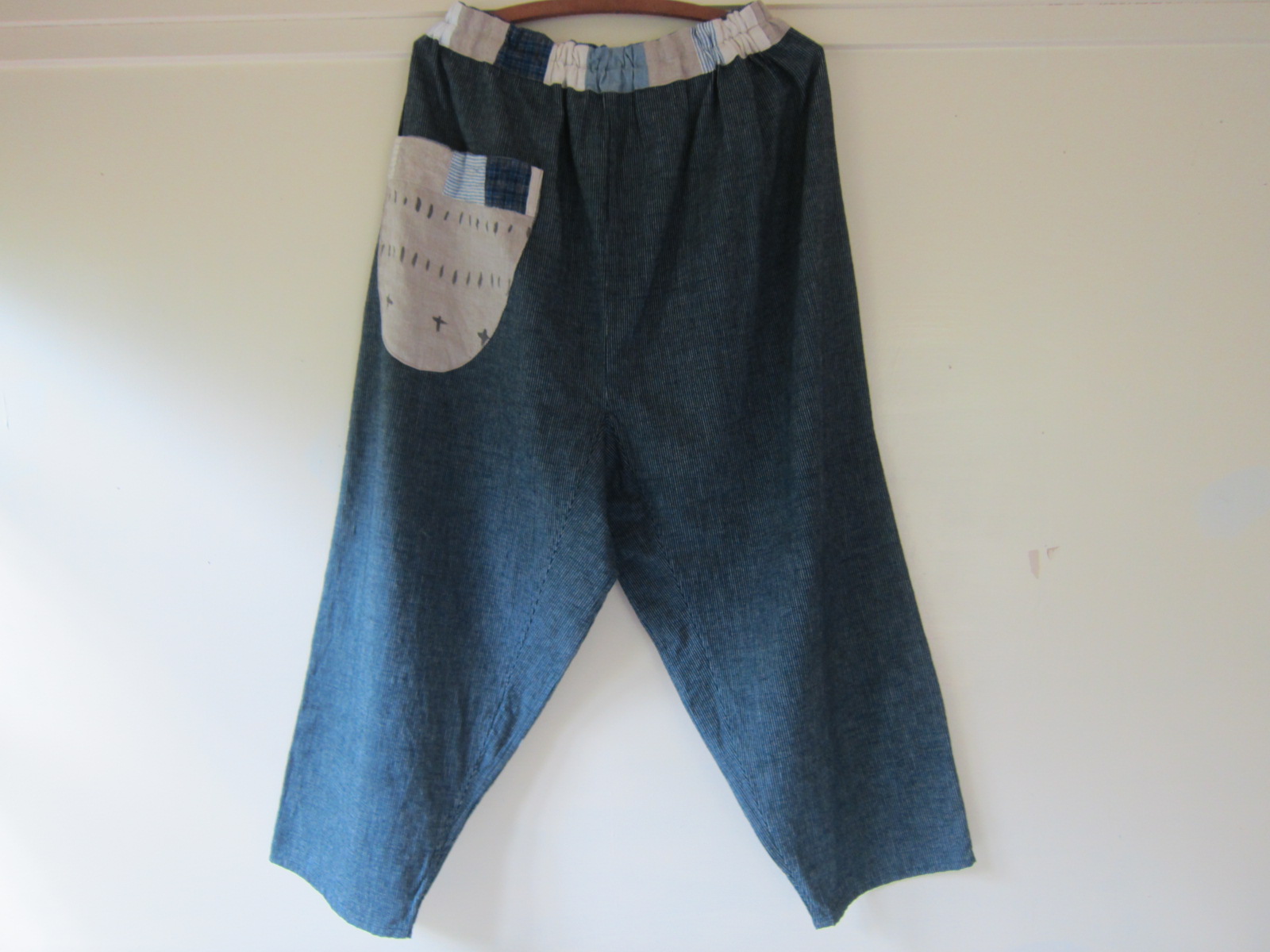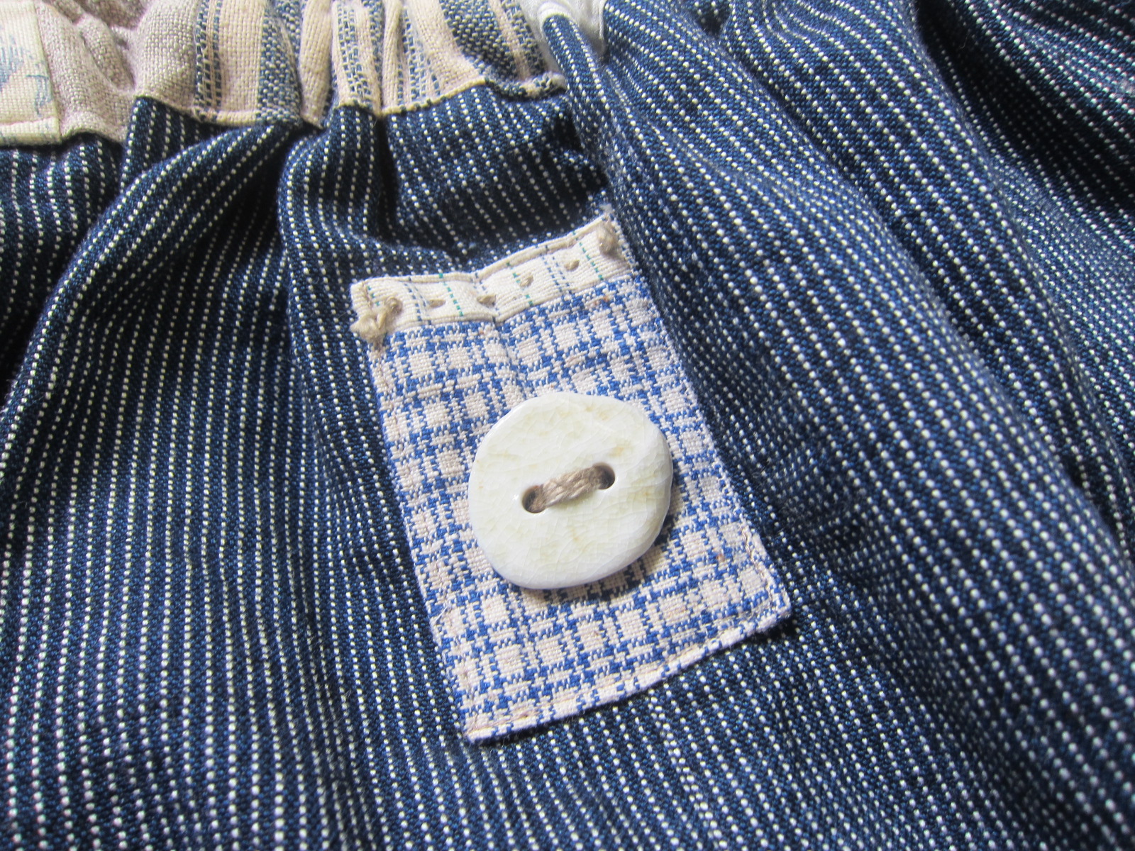 紺地に細いペンシルストライプのもんぺです。