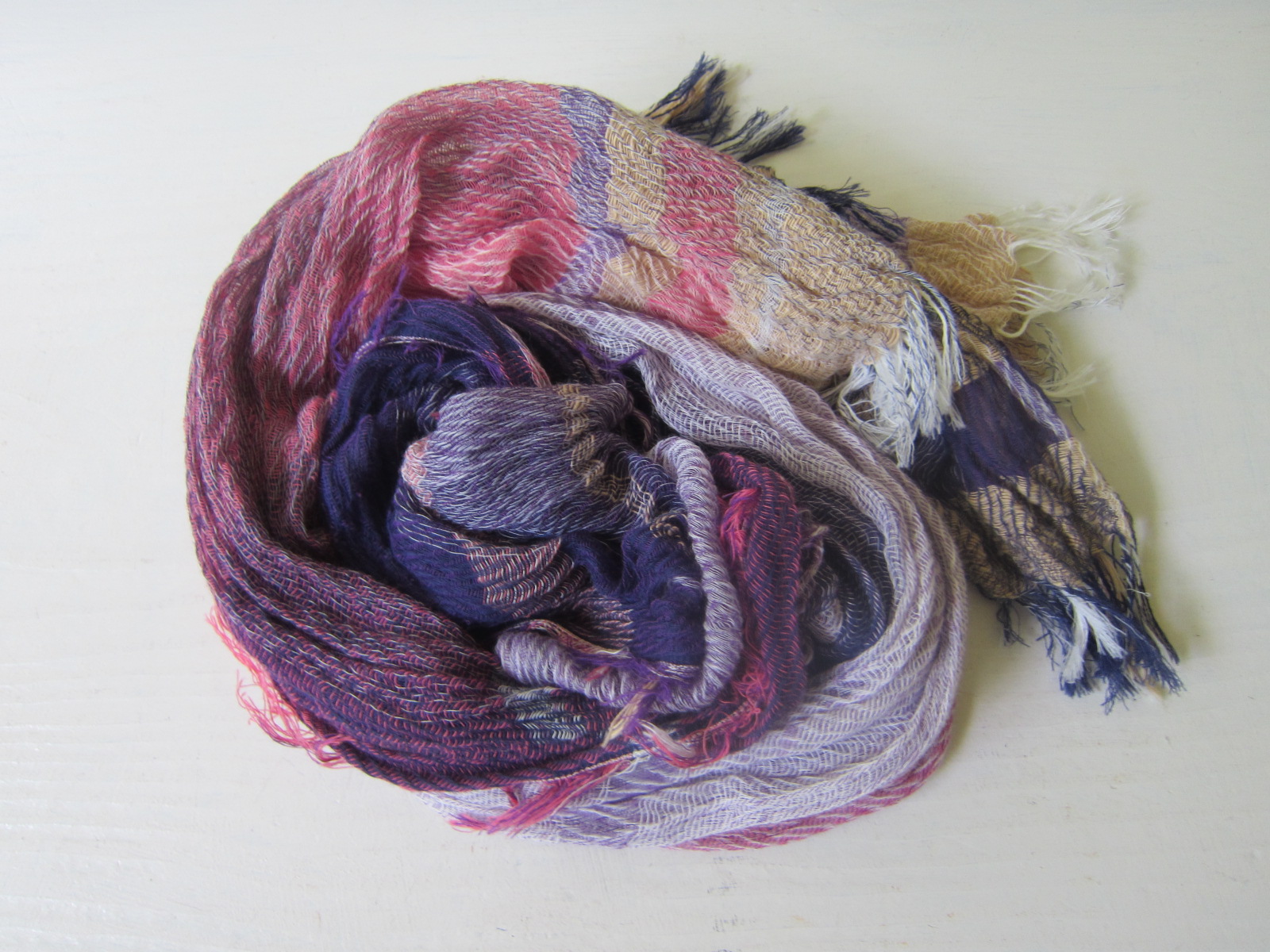 tamaki niime /玉木新雌 roots shawl MIDDLE(紫ピンク)sold 素材:綿100% サイズ:60×180㎝