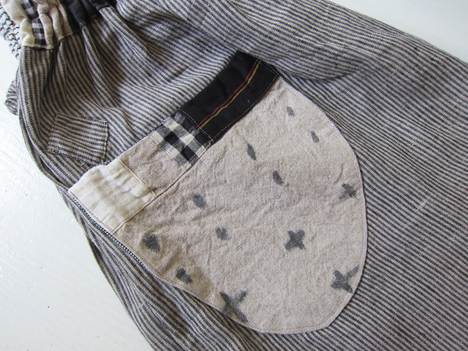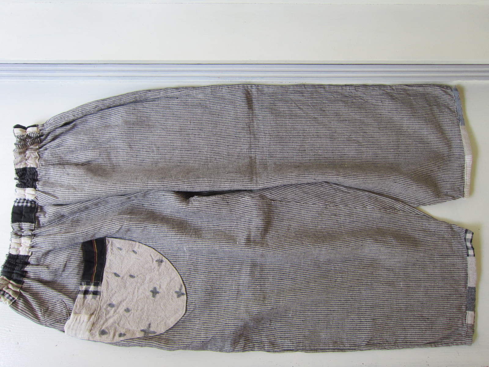 早川ユミ リトアニア麻もんぺ(グレーストライプ)
