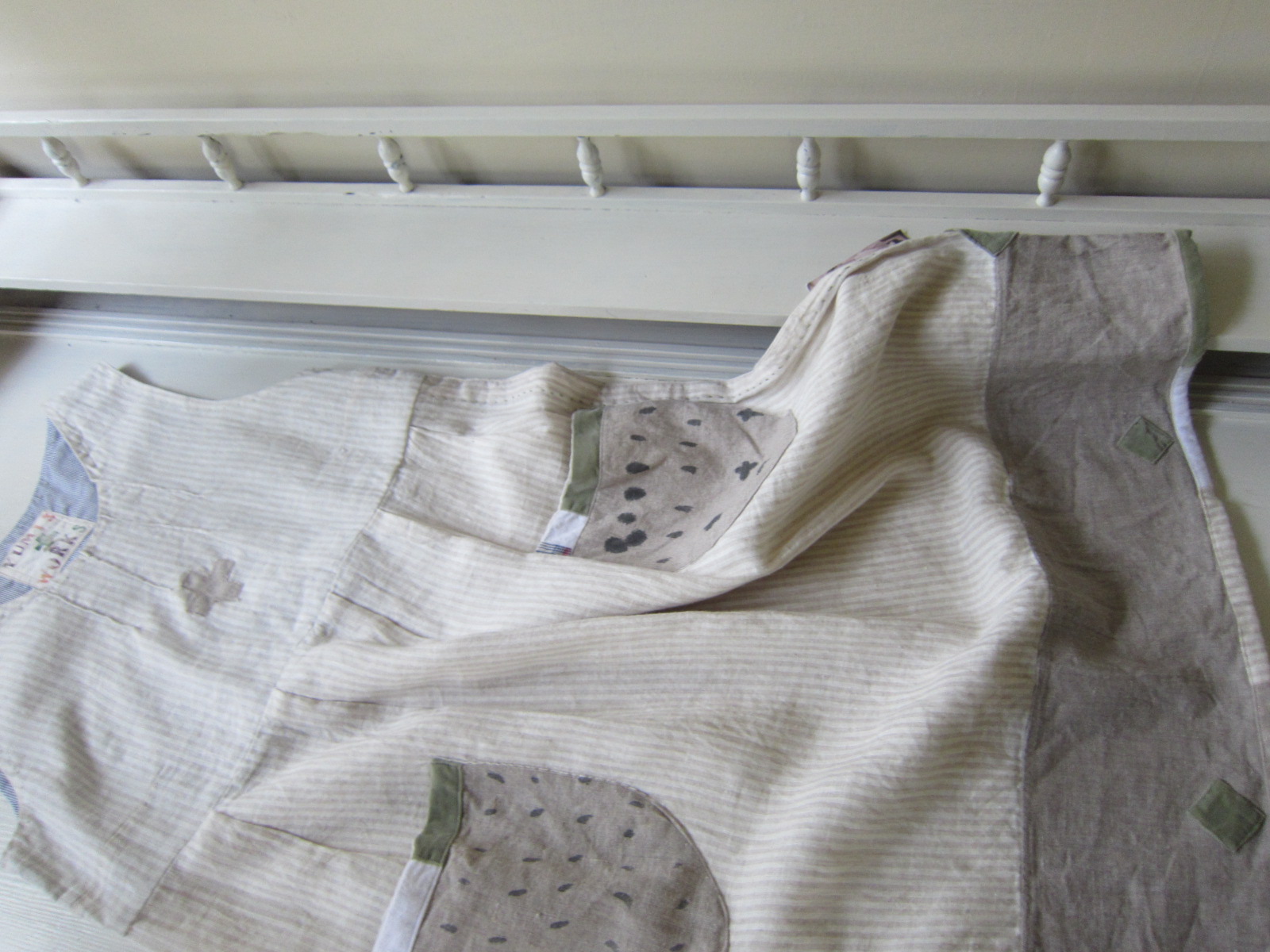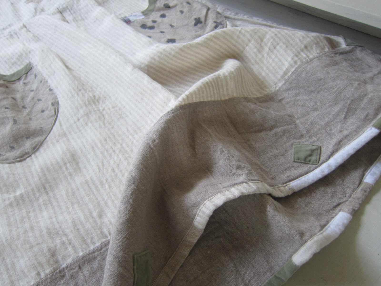 早川ユミ リトアニア麻ワンピース・生成りストライプ
