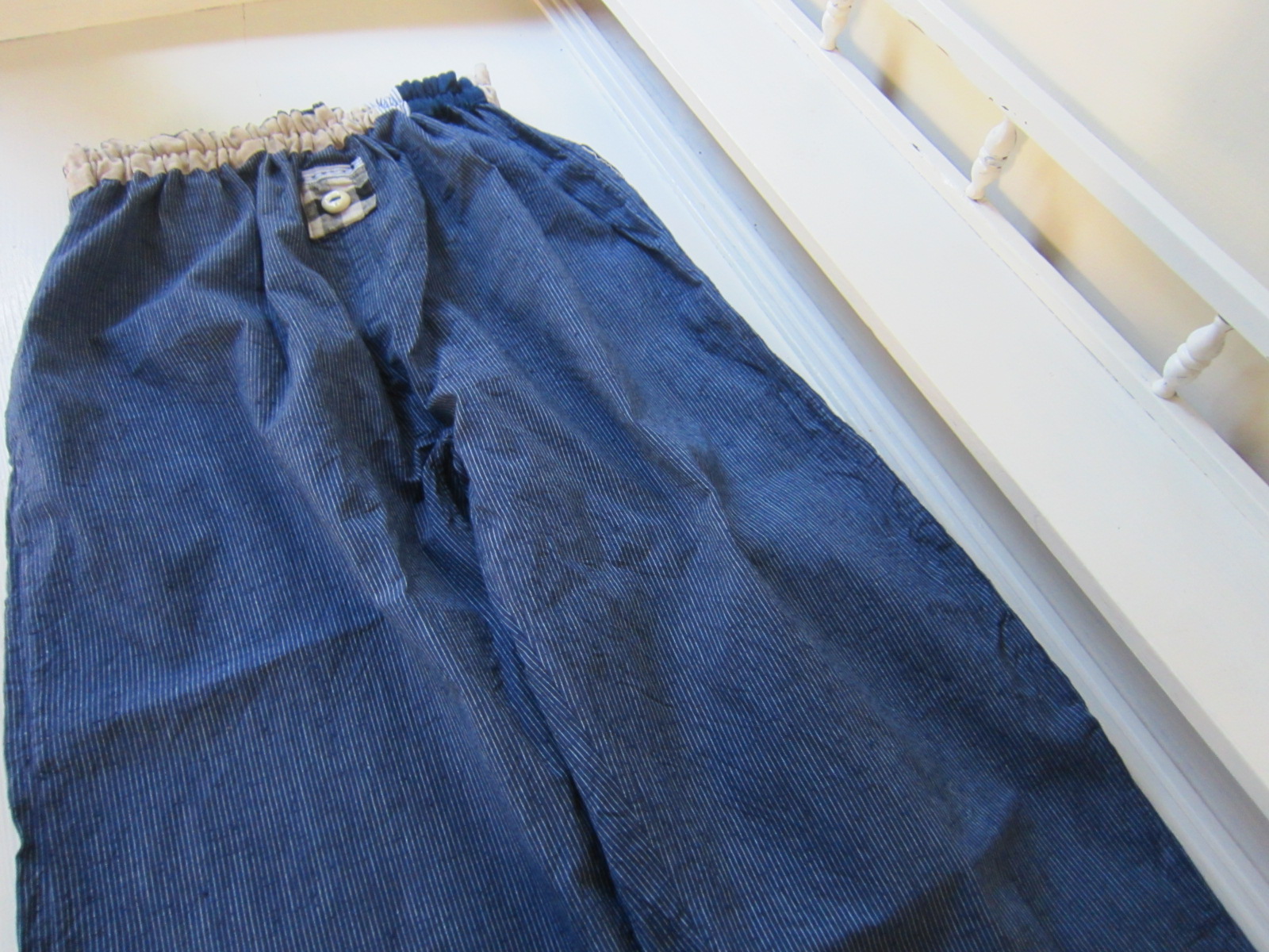 美しい藍色に細いストライプが入っています。 はきならすうちに、 やわらかくとてもいい感じになります。 是非、お試しくださいませ!