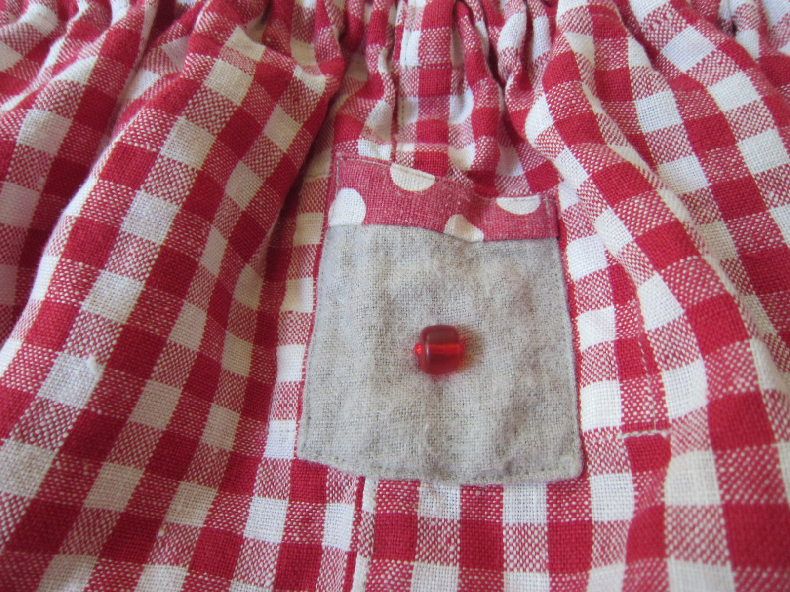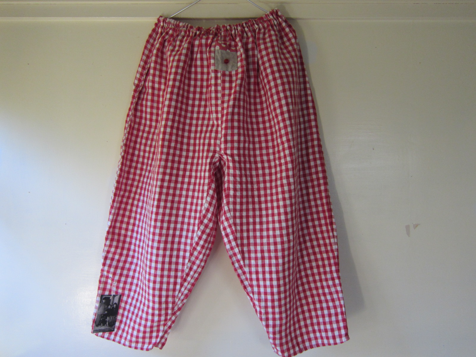赤と白のチェックがとても可愛いいリトアニア麻もんぺです!