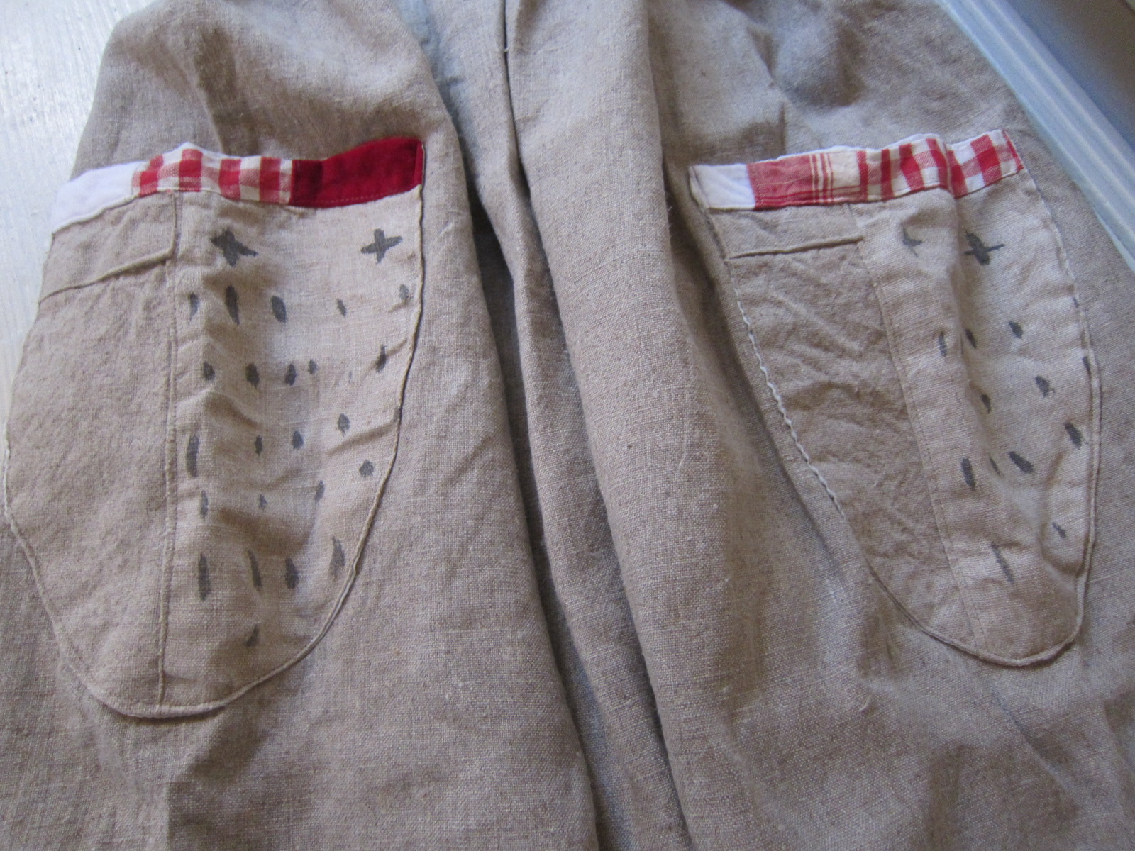 ポケットは墨てんてんと赤と白のつぎはぎのパッチで