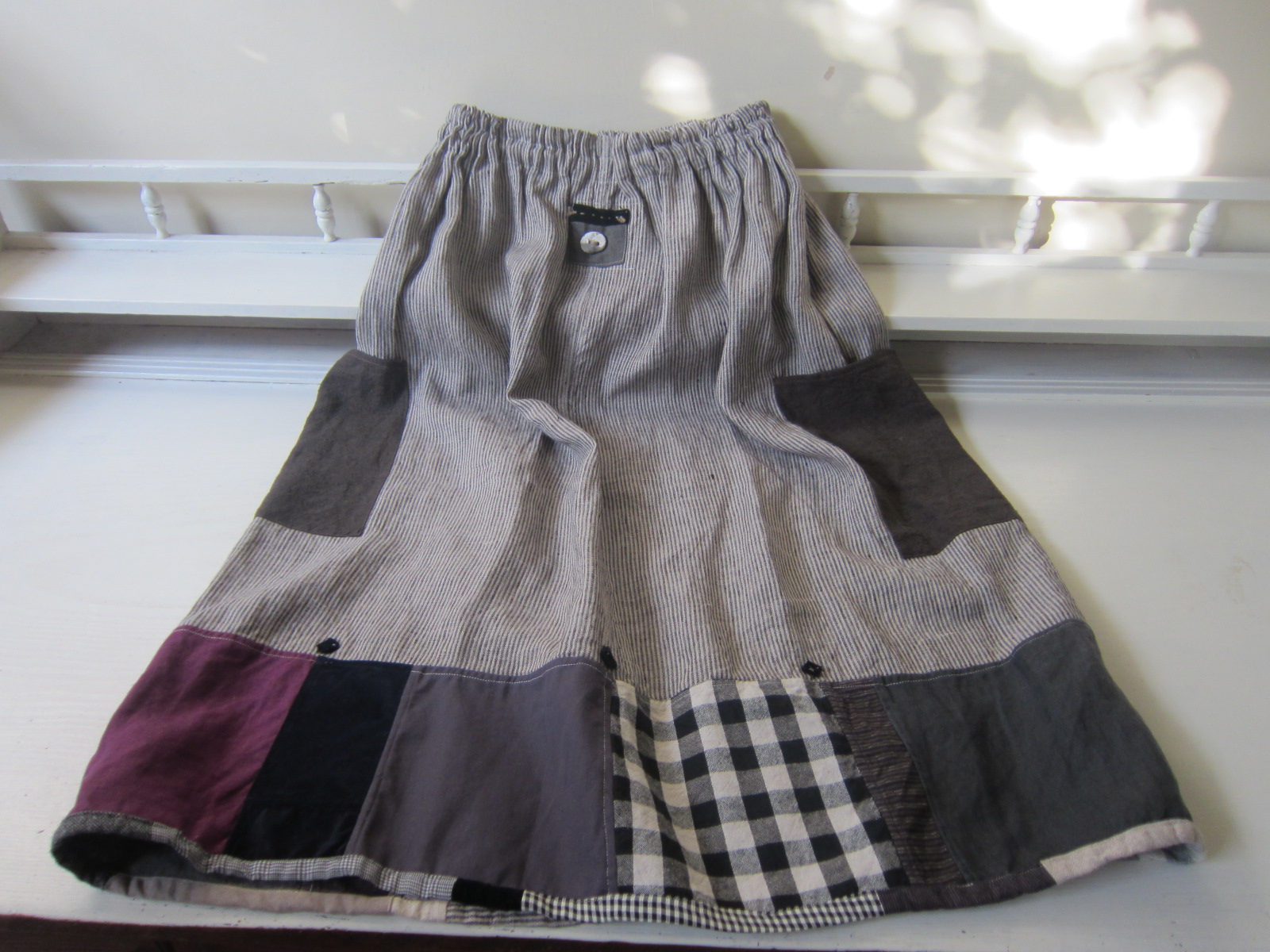 早川ユミ リトアニア麻(グレーストライプ)スカート・新入荷 sold
