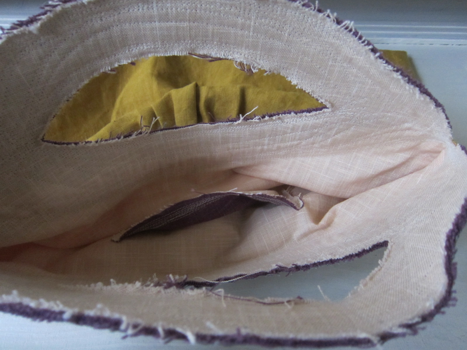 表布/辛子色 持ち手/グレー 裏布/肌色 差し色/紫