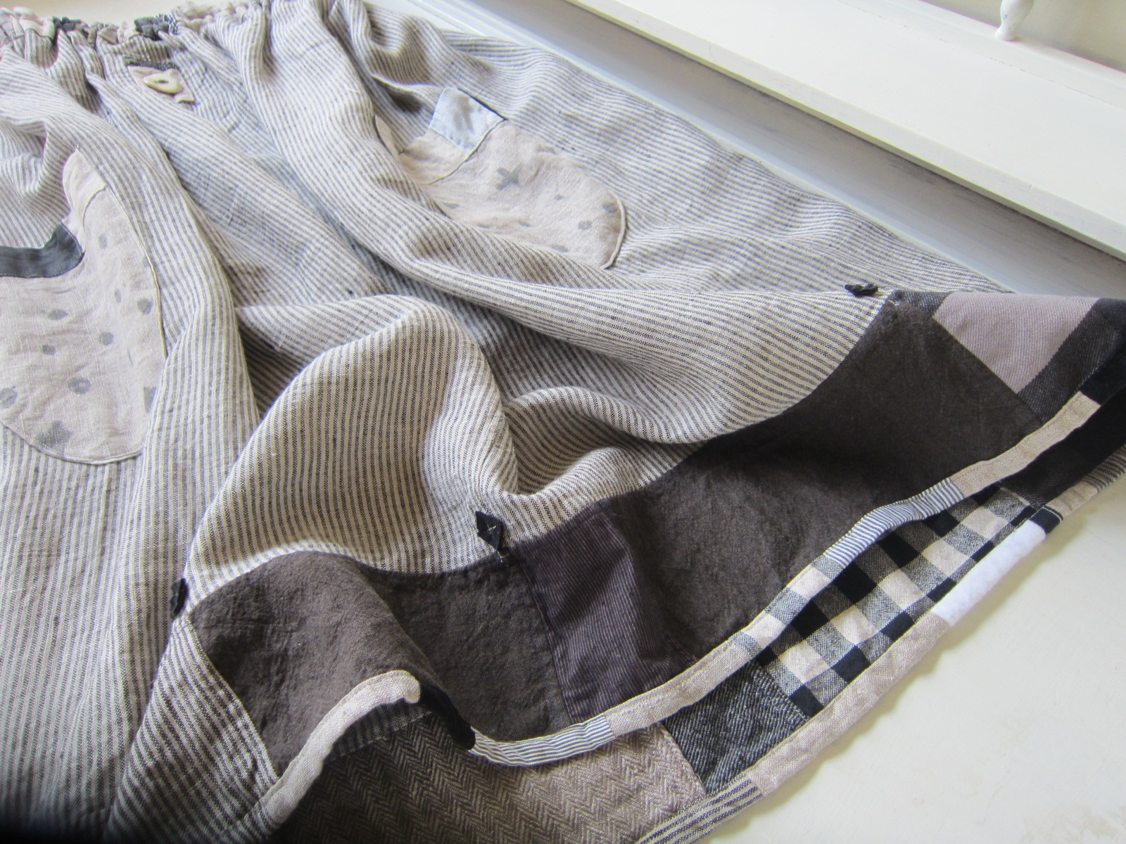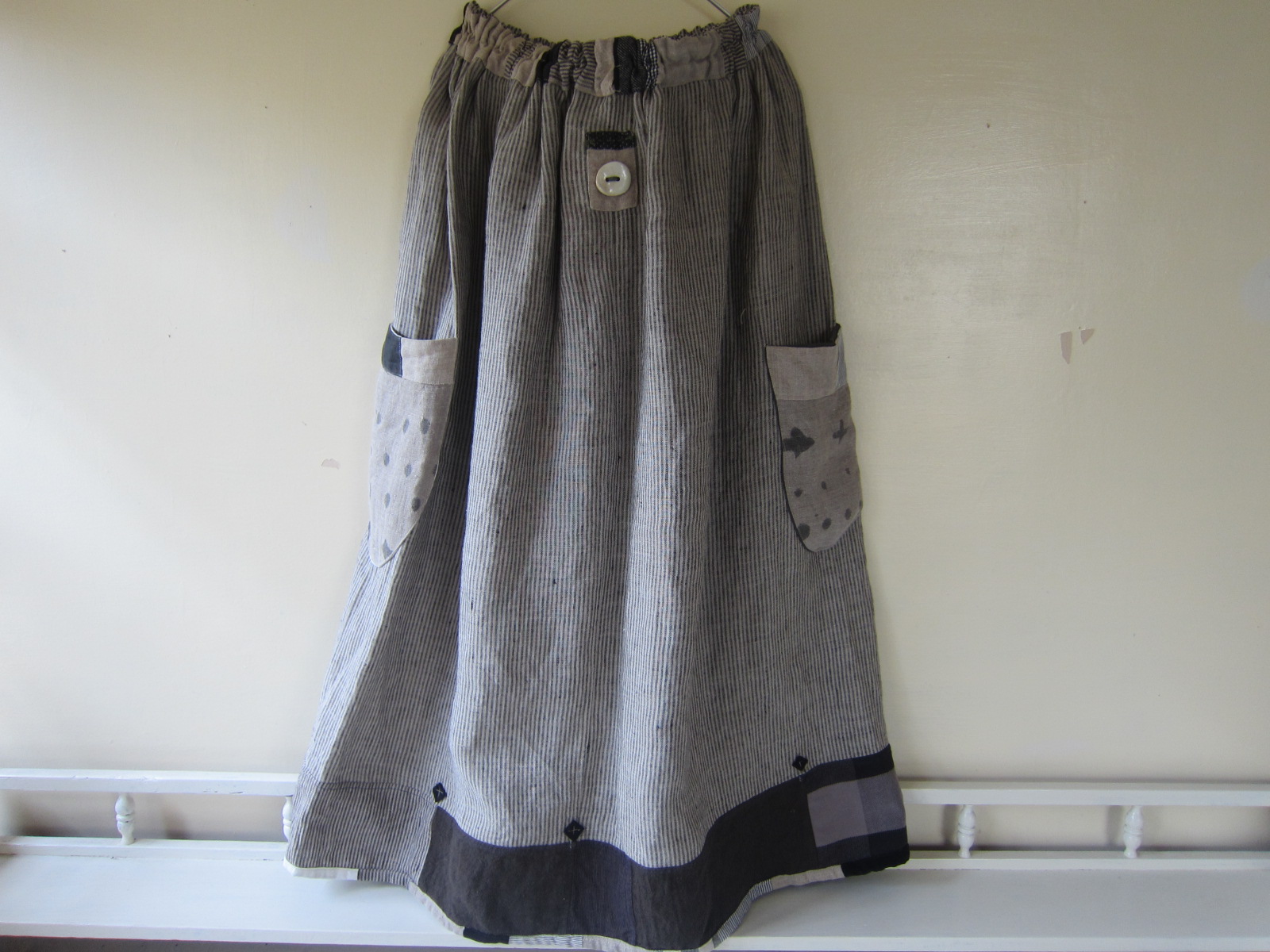 早川ユミ リトアニア麻スカート(グレーストライプ)sold
