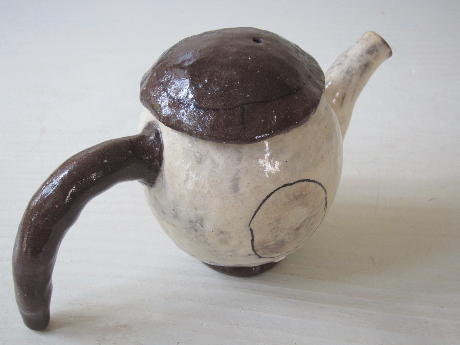 とてもスリムな一人用のポット。 ふたの裏や、ポットの中にも模様が 描かれている楽しいポットです! 毎日のお茶の時間にぜひどうぞ~。