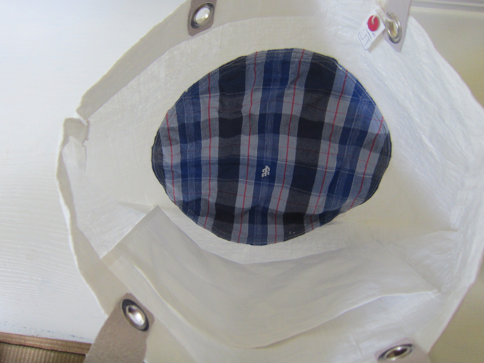 裏布は紺ブル―白の素敵なチェックのユーズド布が