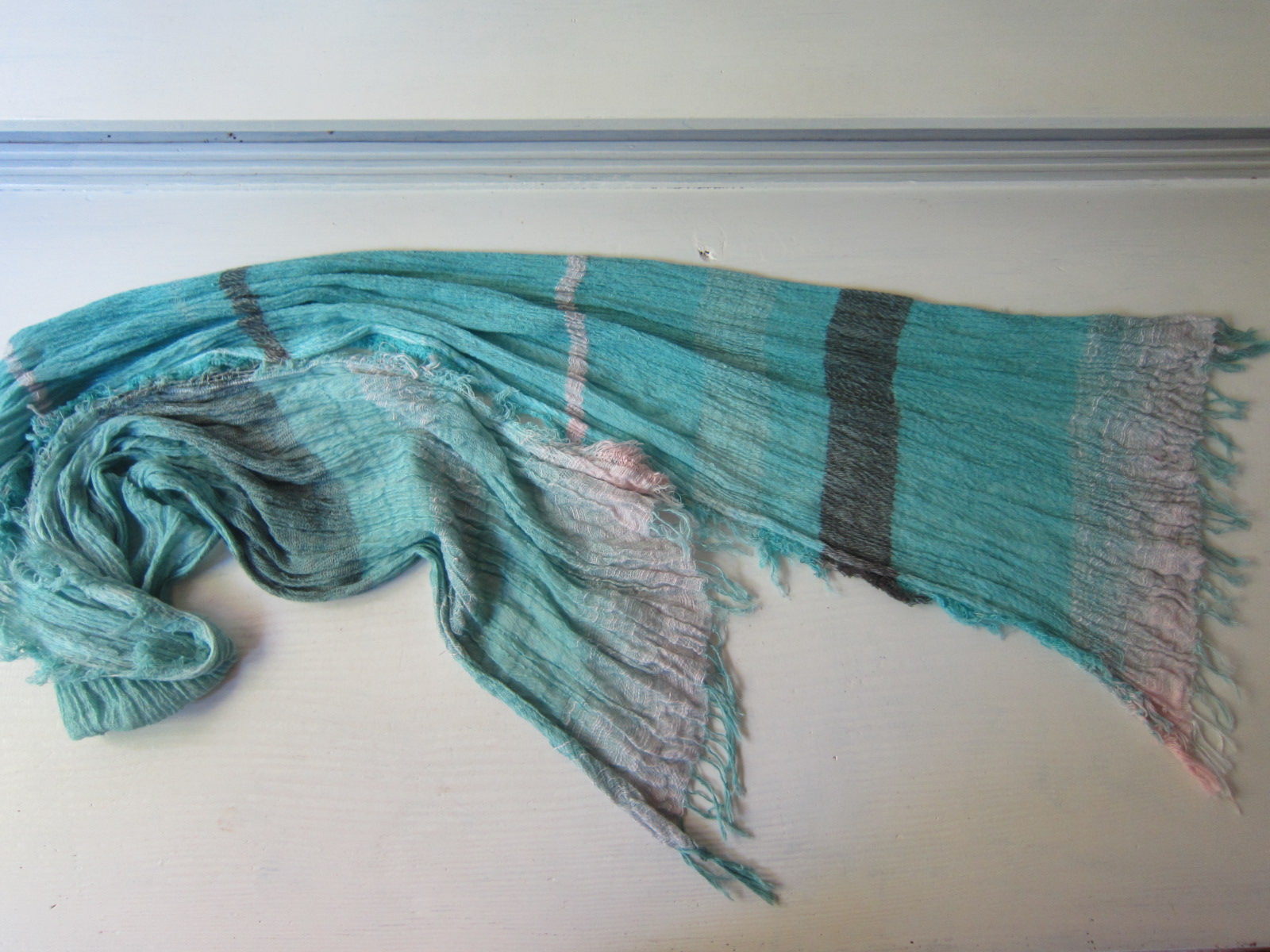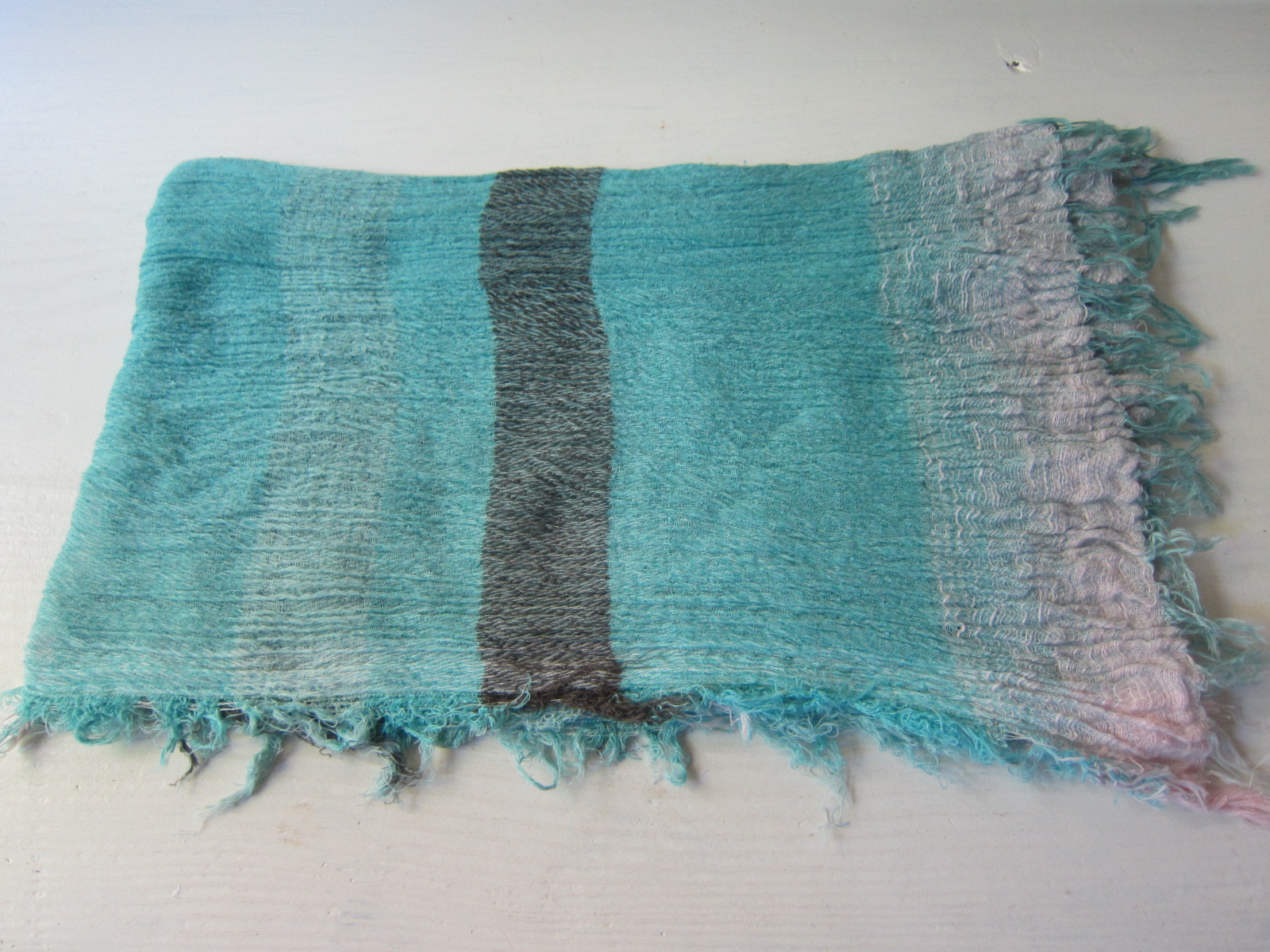 ペパーミントブルーと白のチェックに黒がポイントです。