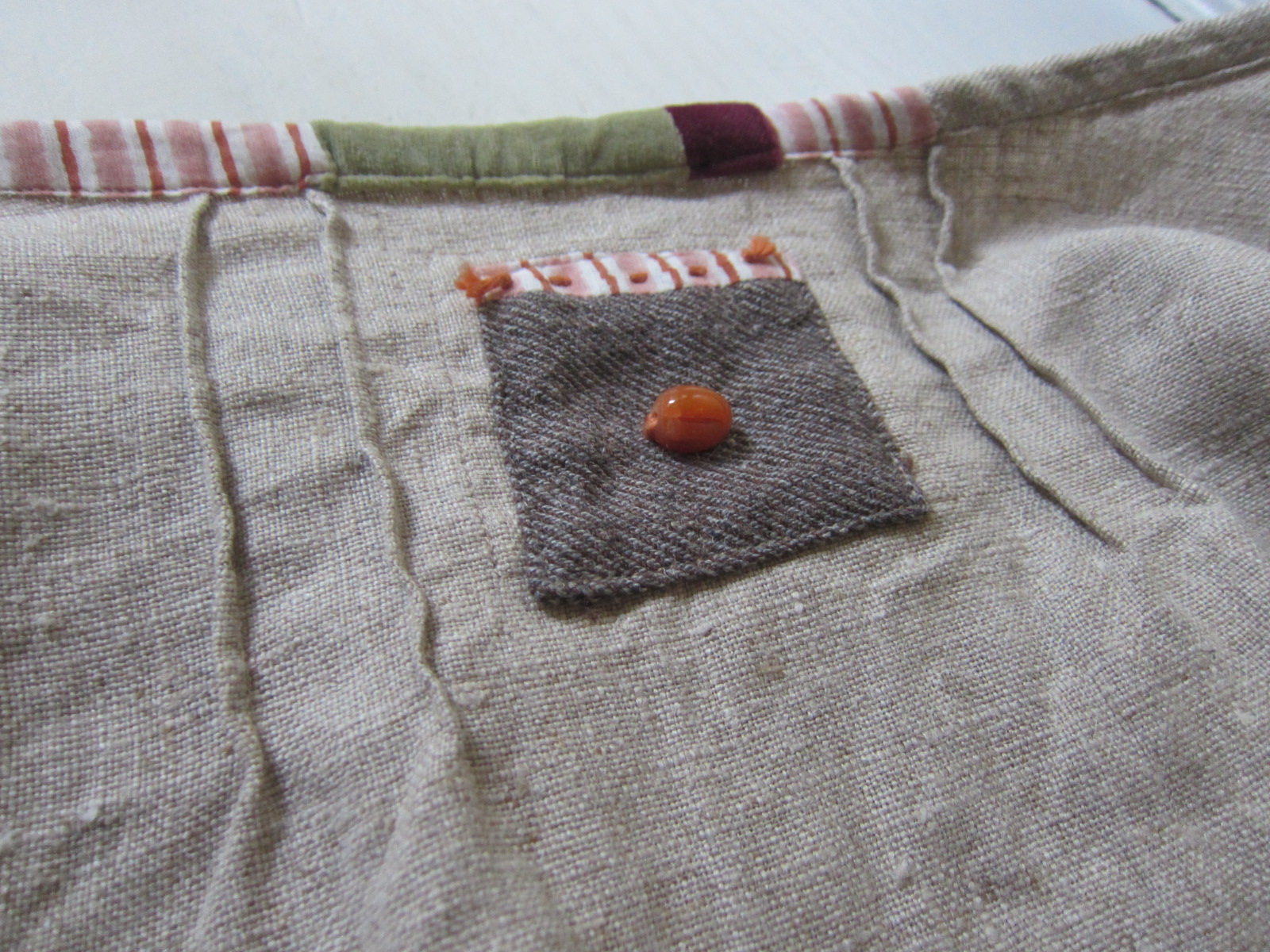 早川ユミ 麻手縫いスモック(渋めの縁取り)