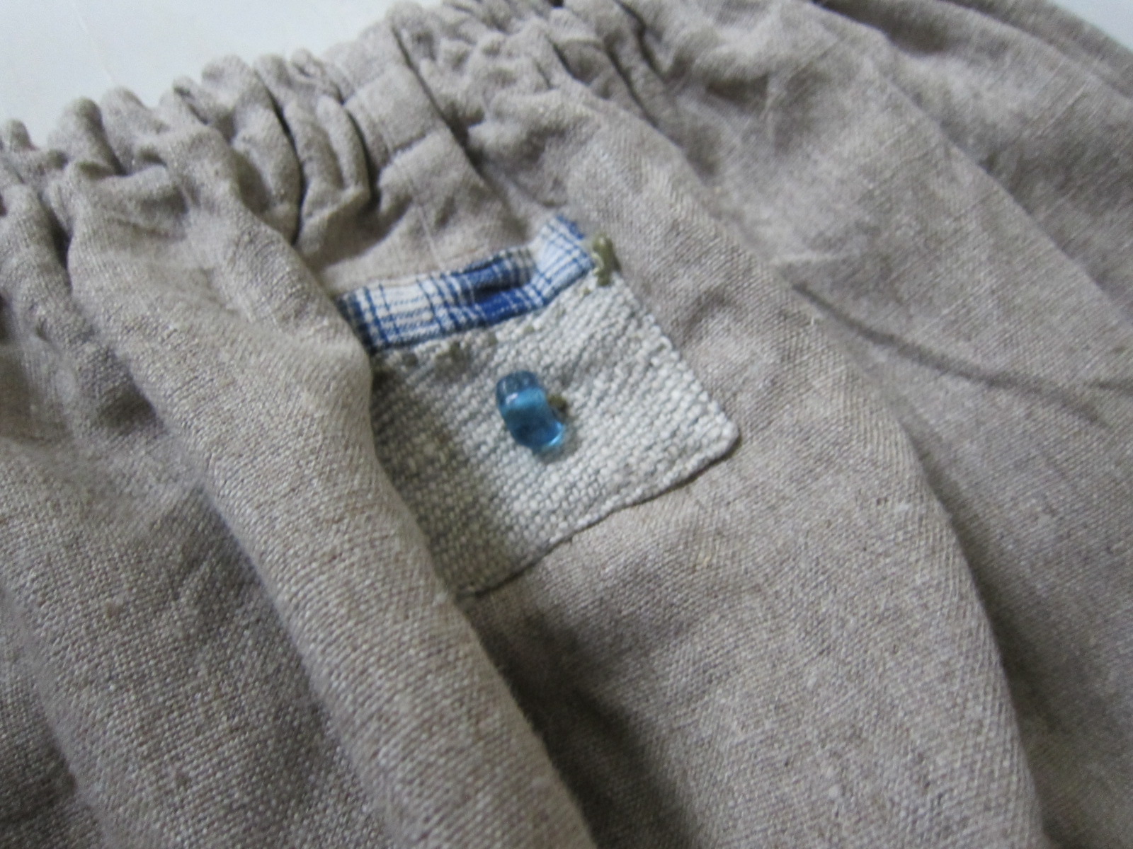 早川ユミ 麻もんぺ(四角い青ポケット)