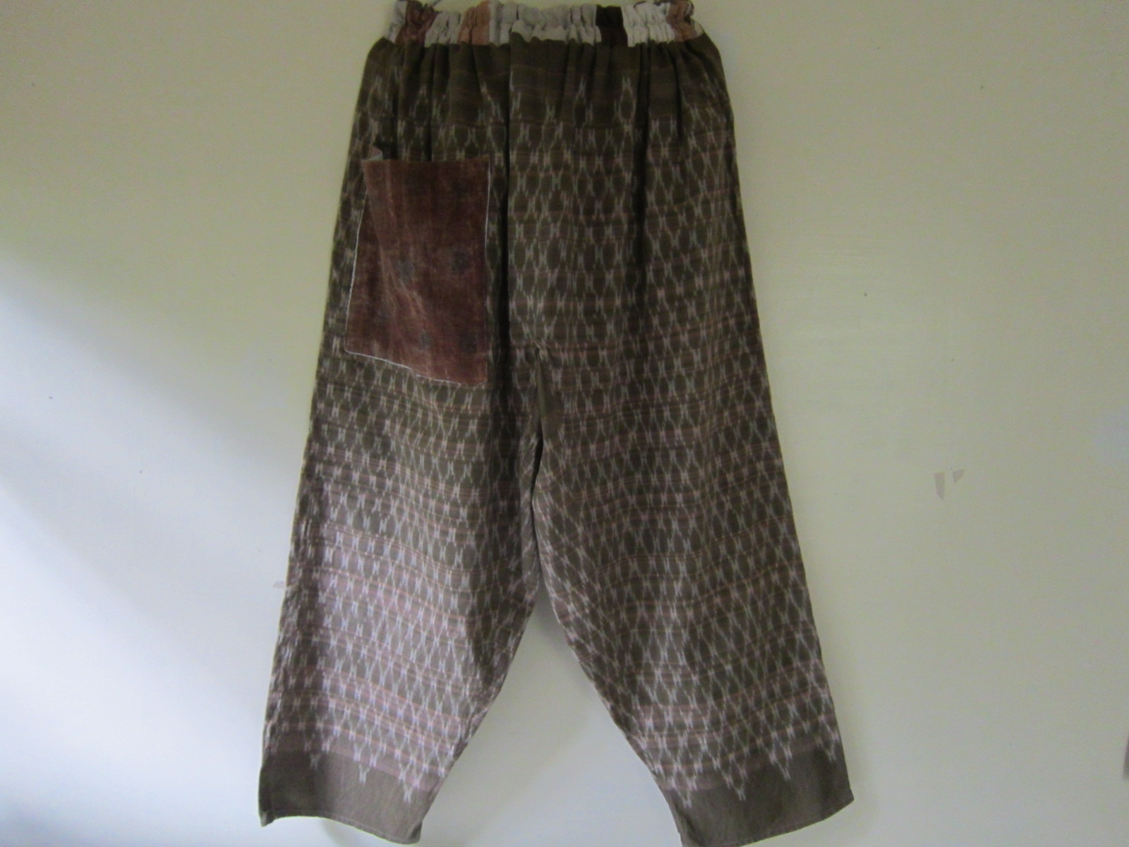 早川ユミ 草木染め手織り絣布もんぺ(柿渋染ポケット)