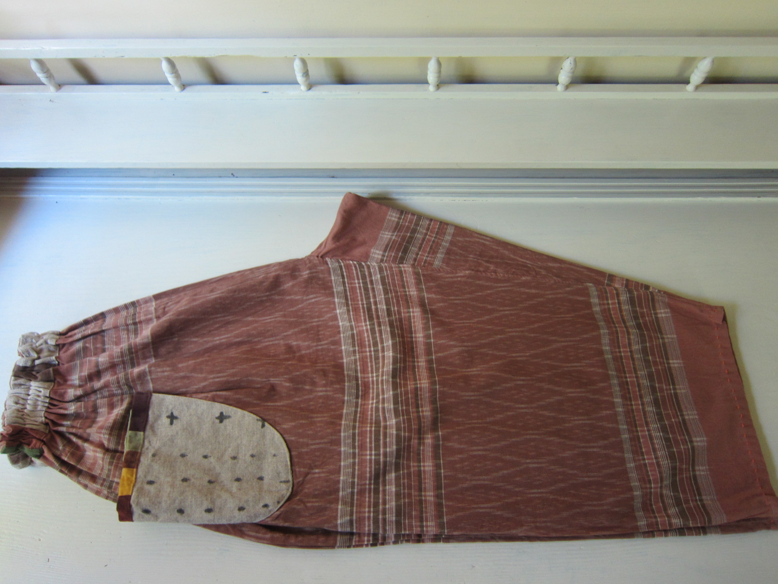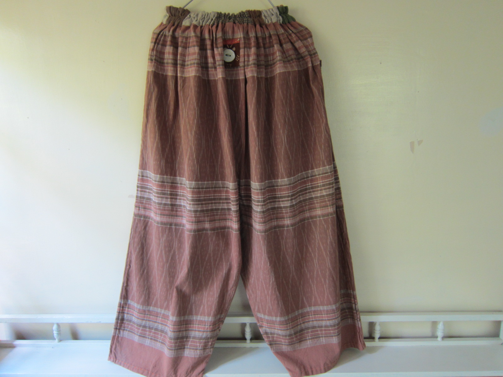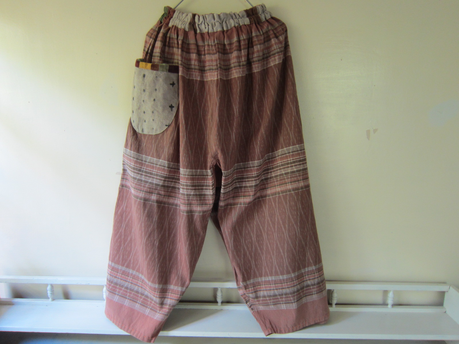 早川ユミ 草木染め手織り絣布もんぺ(墨てんてんポケット)