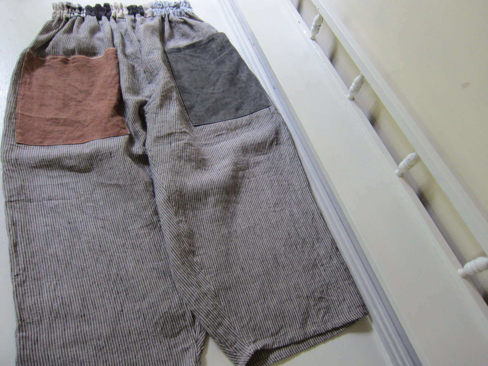 早川ユミ リトアニア麻もんぺ(茶と黒の柿渋ポケット)