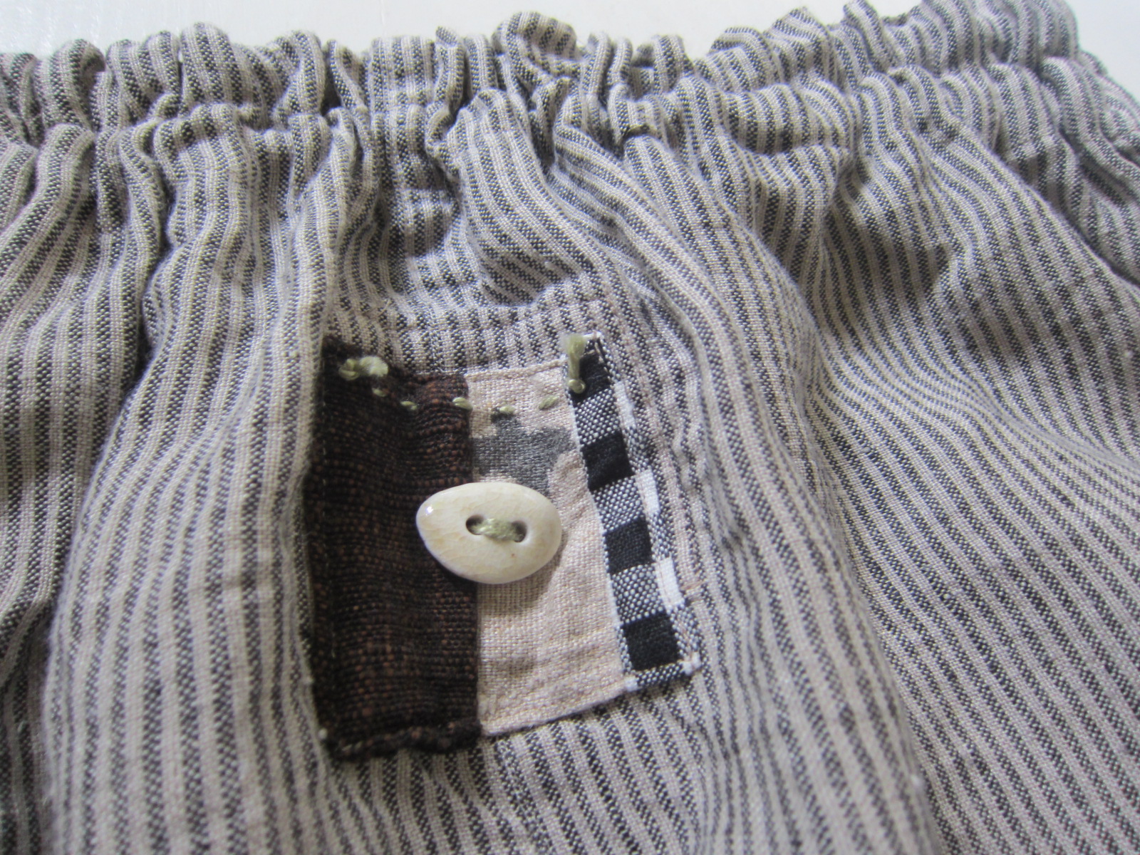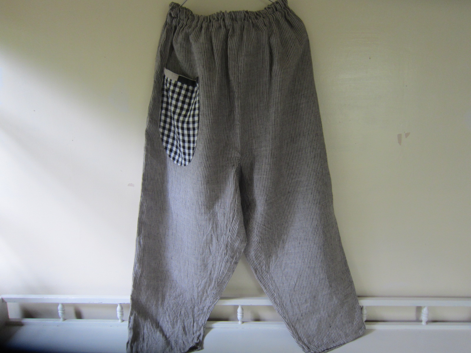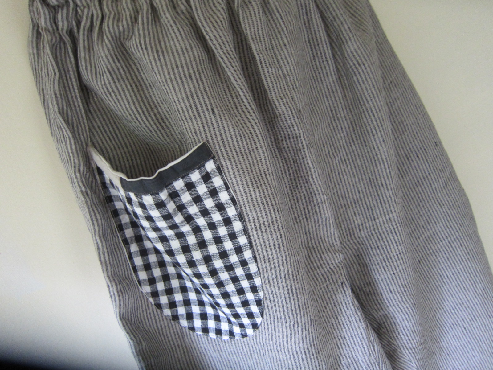 早川ユミ リトアニア麻もんぺ/グレーストライプ(チェックポケット)