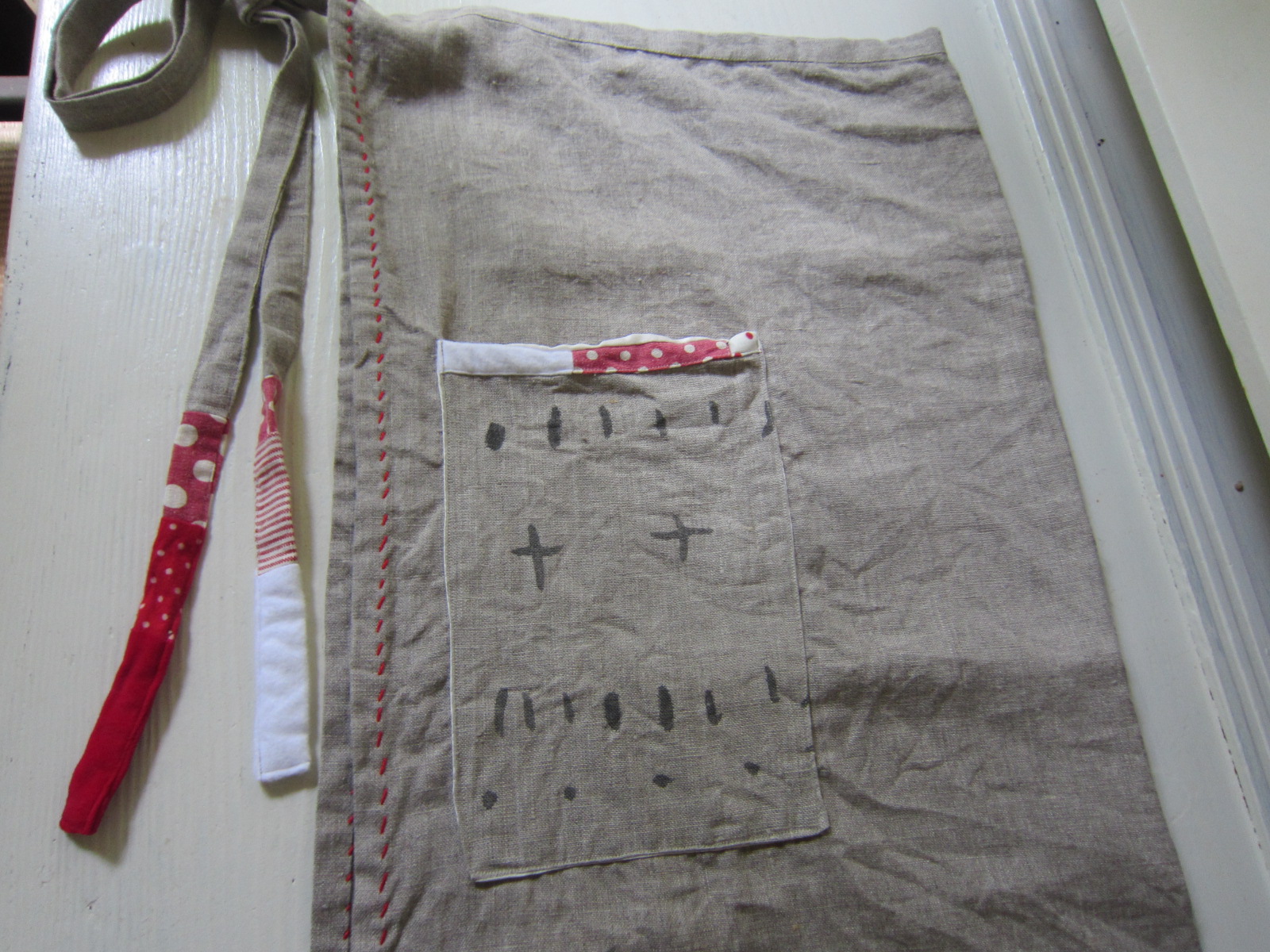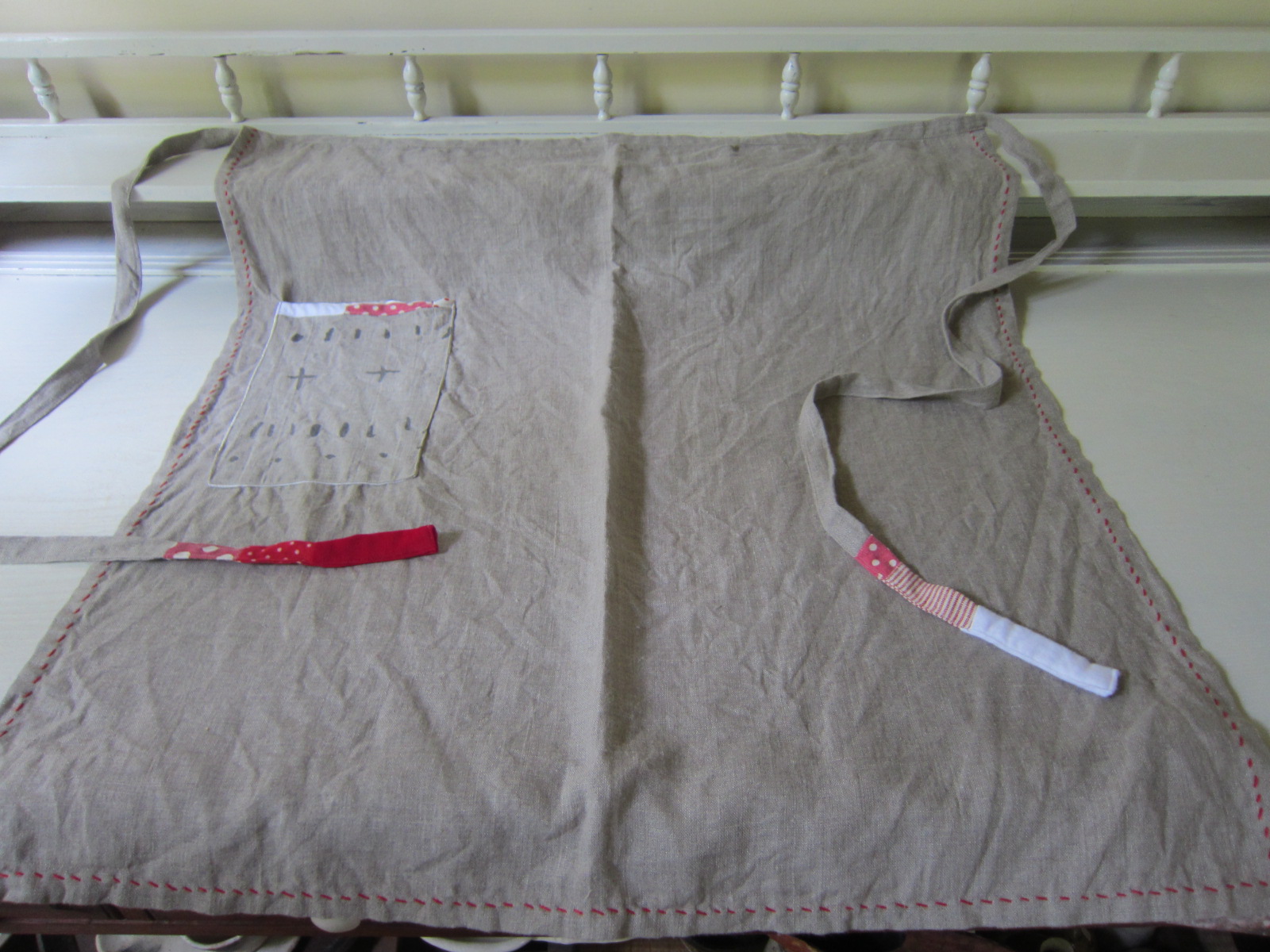 早川ユミ 麻ちくちく手縫いまえかけ(四角ポケット)