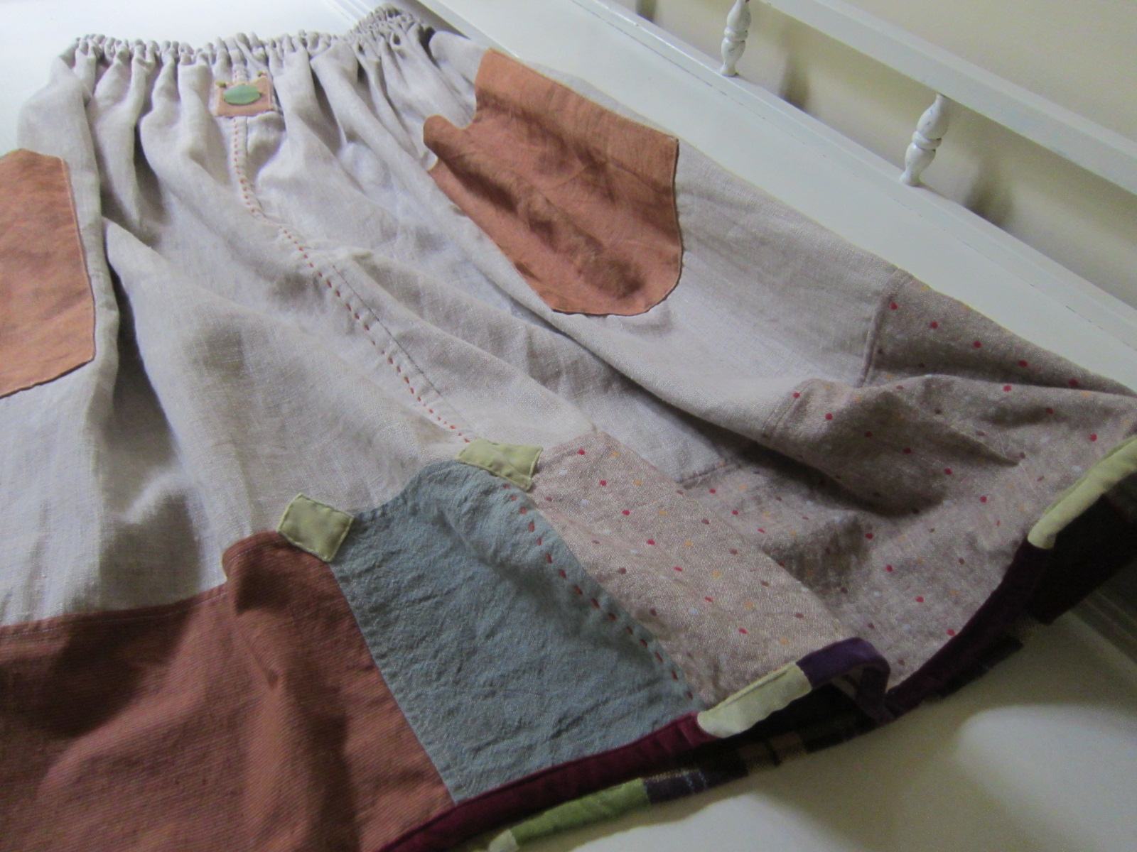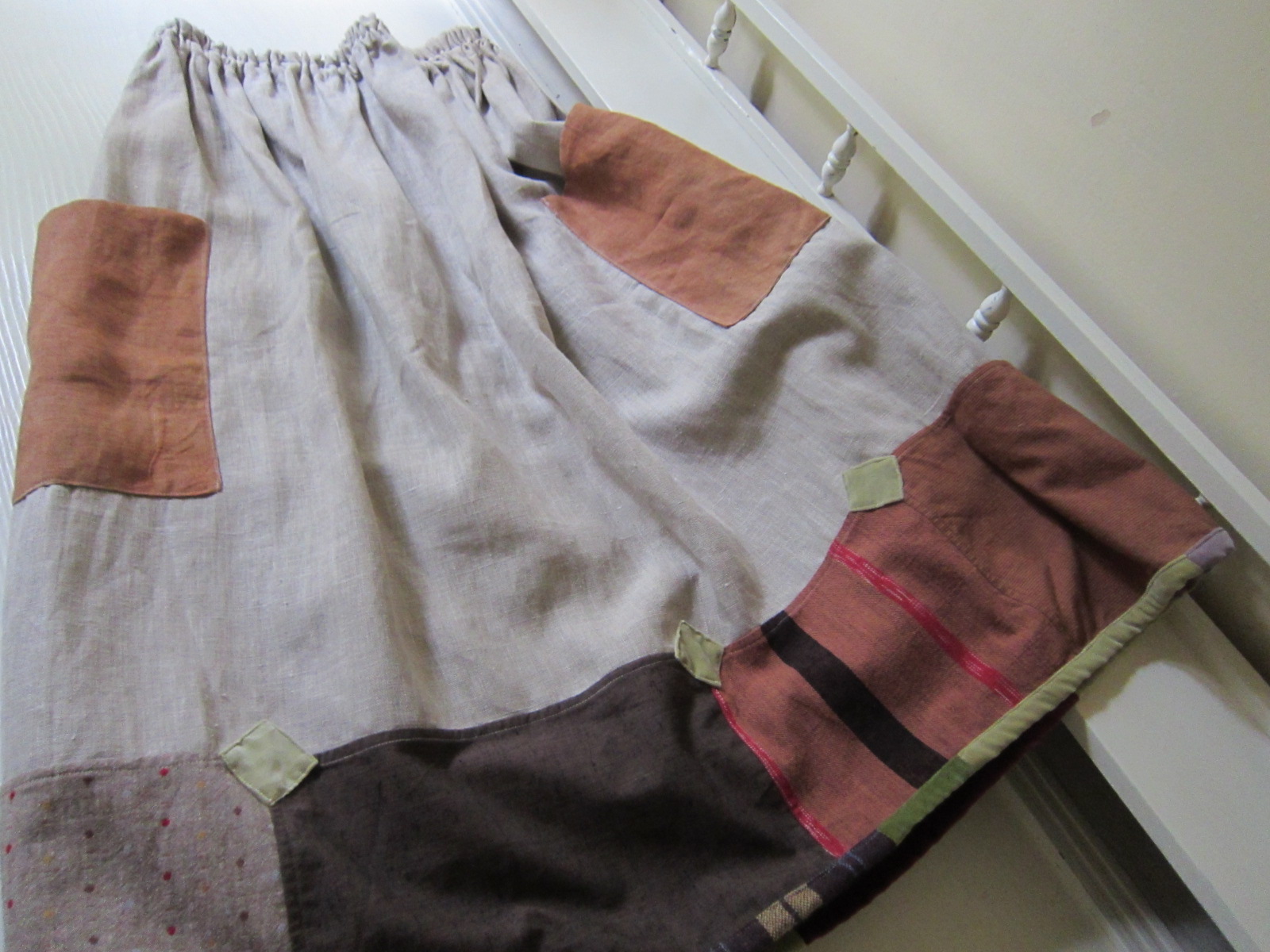 早川ユミ リトアニア麻+土佐つむぎ+上海木綿つぎはぎスカート
