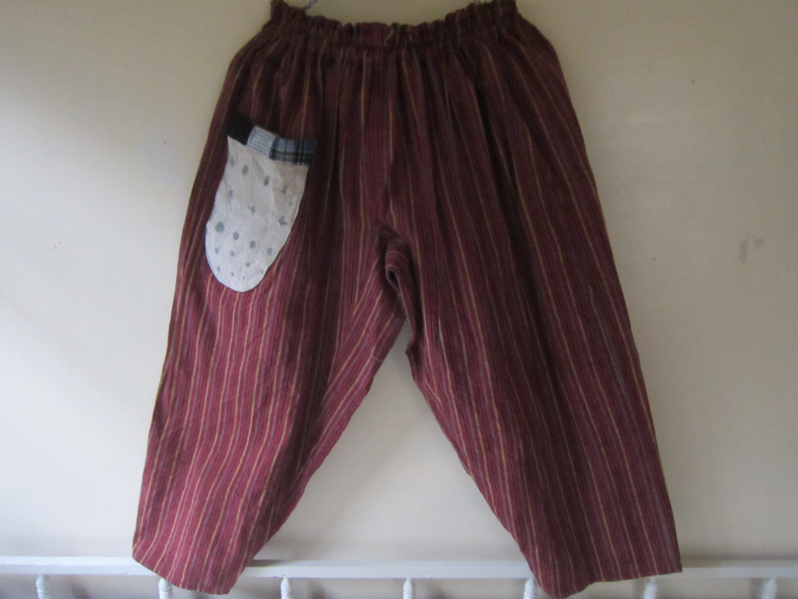 やわらかいつむぎ布のカラフルもんぺです。