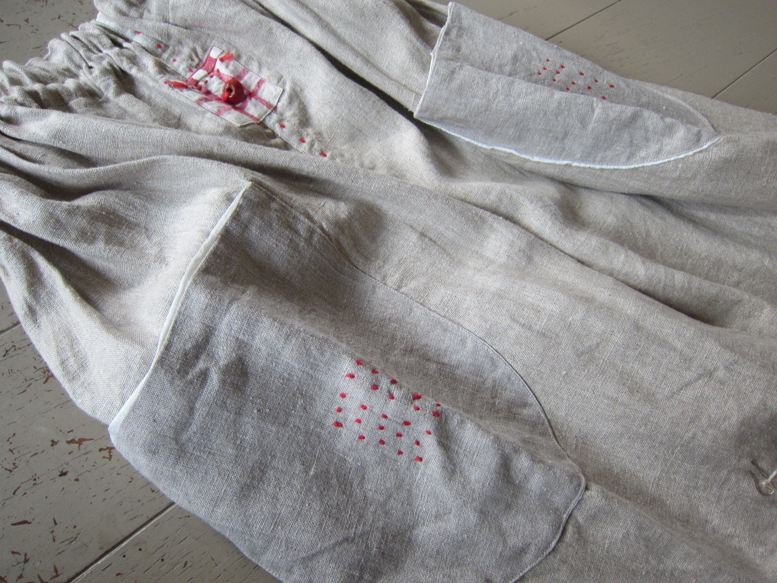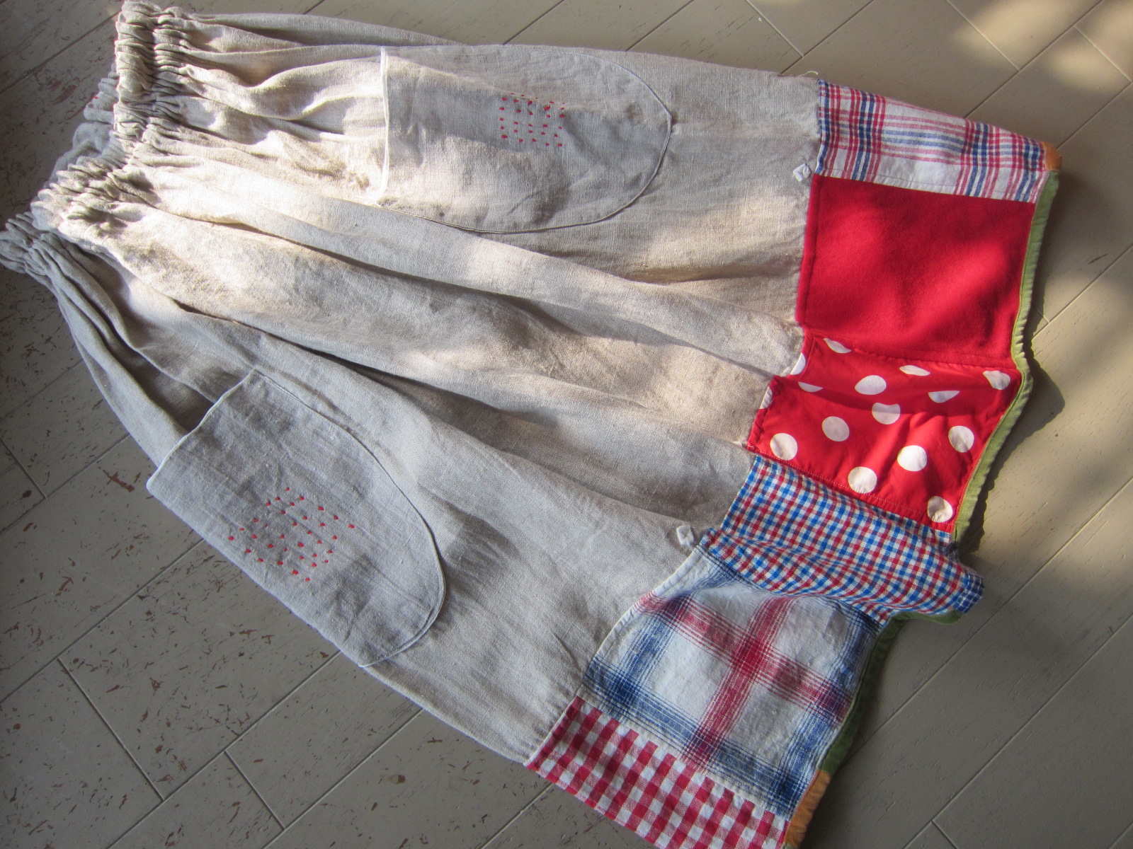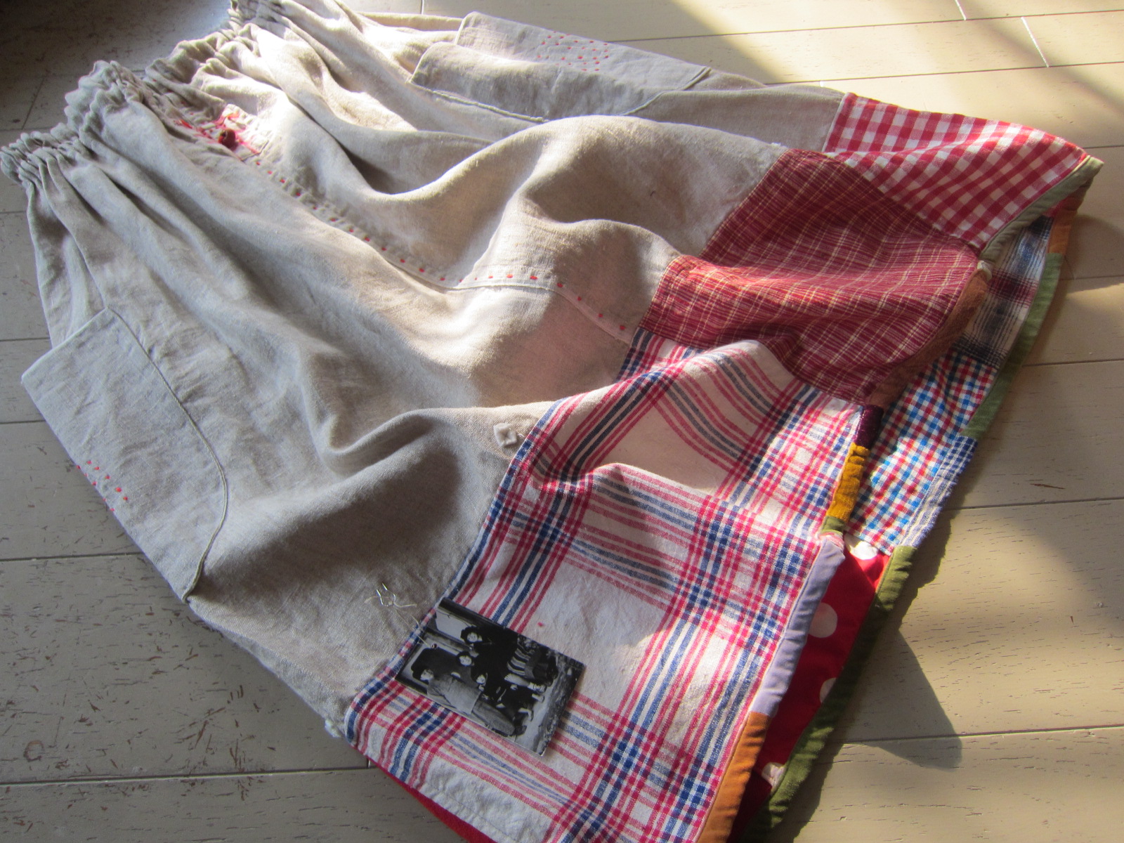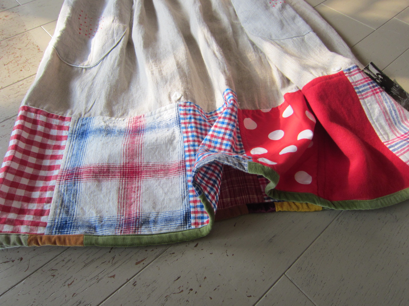 早川ユミ リトアニア麻+土佐つむぎ+上海木綿つぎはぎスカート➀