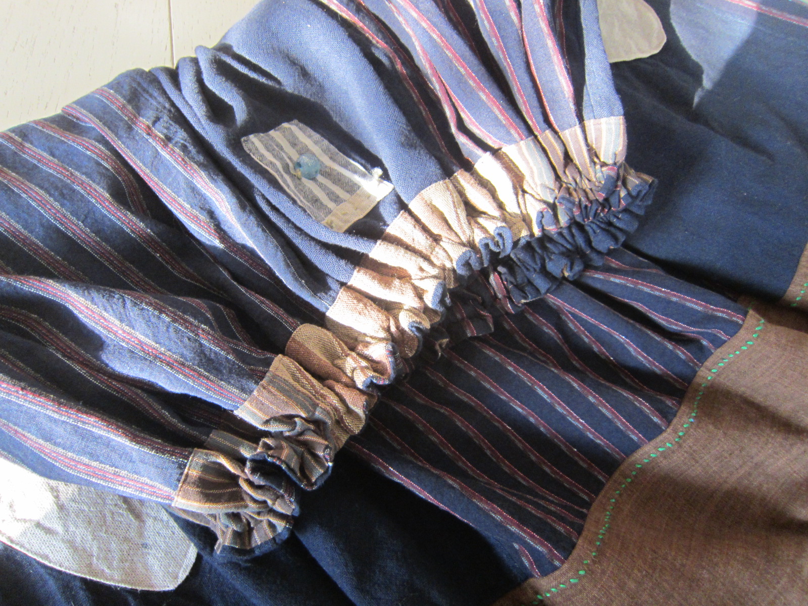 早川ユミ 茶+藍染め手織り布スカート①
