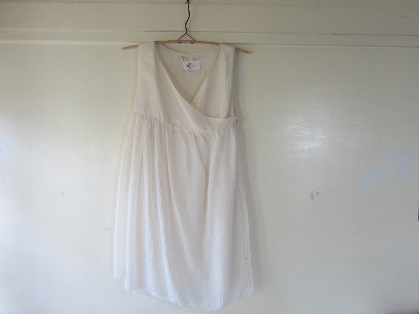 早川ユミ オーガニックガーゼのカシュクールワンピース白➀